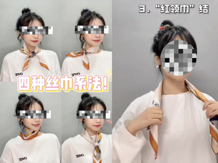 戴在脖颈,打个温柔小领结增加造型层次感,还能在视觉上显瘦不少;或者倒三角式戴在脖颈,帅气有型,还能减少肩宽。