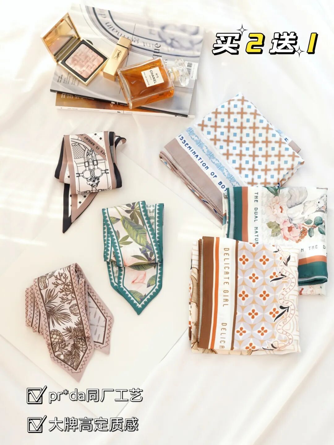 价格完全不用担心,PR*DA同厂工艺,一条大牌丝巾高达要2000+,我们直接从工厂拿货,没有中间差价,买2送1!买2送1!(赠送款为随机款)到手3条不到70!质感同属top级!