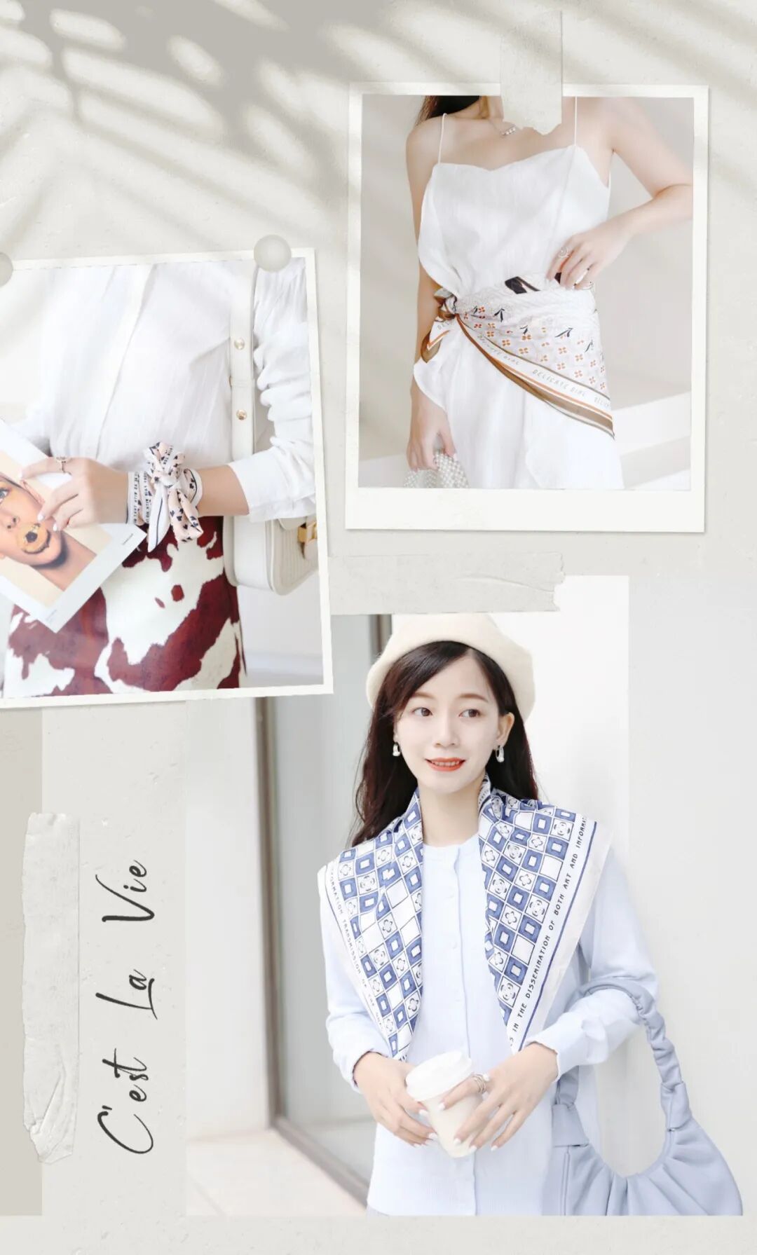 当做头巾,头巾巨好凹造型,拍照必备!还能很好的修饰脸型,让整个人看起来更加时髦高级。