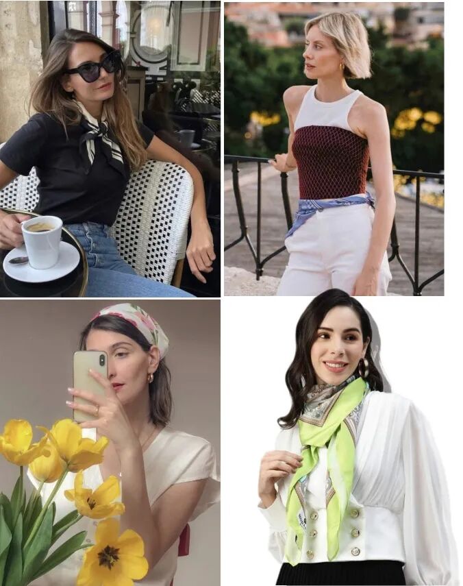 现在丝巾依然深受时尚icon们青睐,做配饰、发饰、领结都能完美融合,穿搭立马变得鲜活起来。