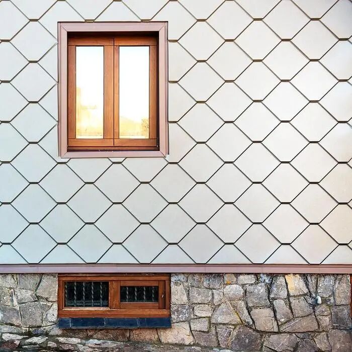 多指单片表面积相对较小的钛锌板,有方形、矩形、菱形和平行四边形等带折边的类型。