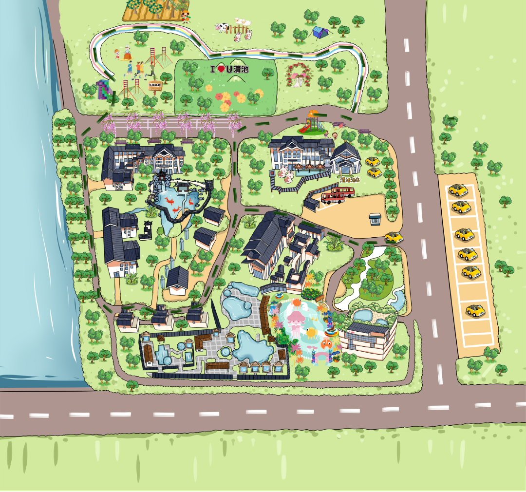 除了享受热力温泉之外,清池温泉酒店也是亲子游览的绝佳打卡地,户外12000平方米的阳光大草坪,简直就是个纯天然氧吧,"熊孩子"们可以在儿童乐园或是萌宠乐园尽情撒欢。
