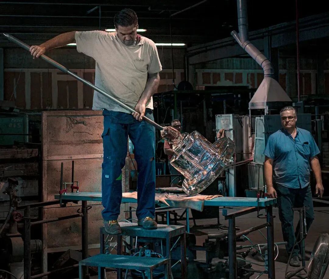 保留玻璃原始的透明感,坚硬的锤击表面会破碎其透明度,从而赋予原始的美感。