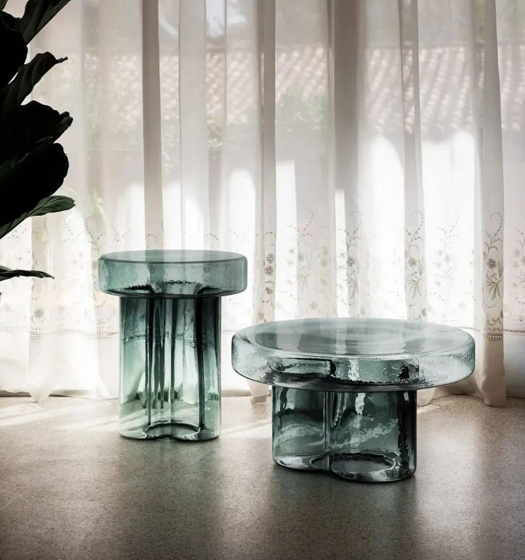 玻璃制品的家具在空间中是非常常见的,既能体现家具的美感又能与空间中的其他材质产生碰撞,呈现不一样的空间效果。