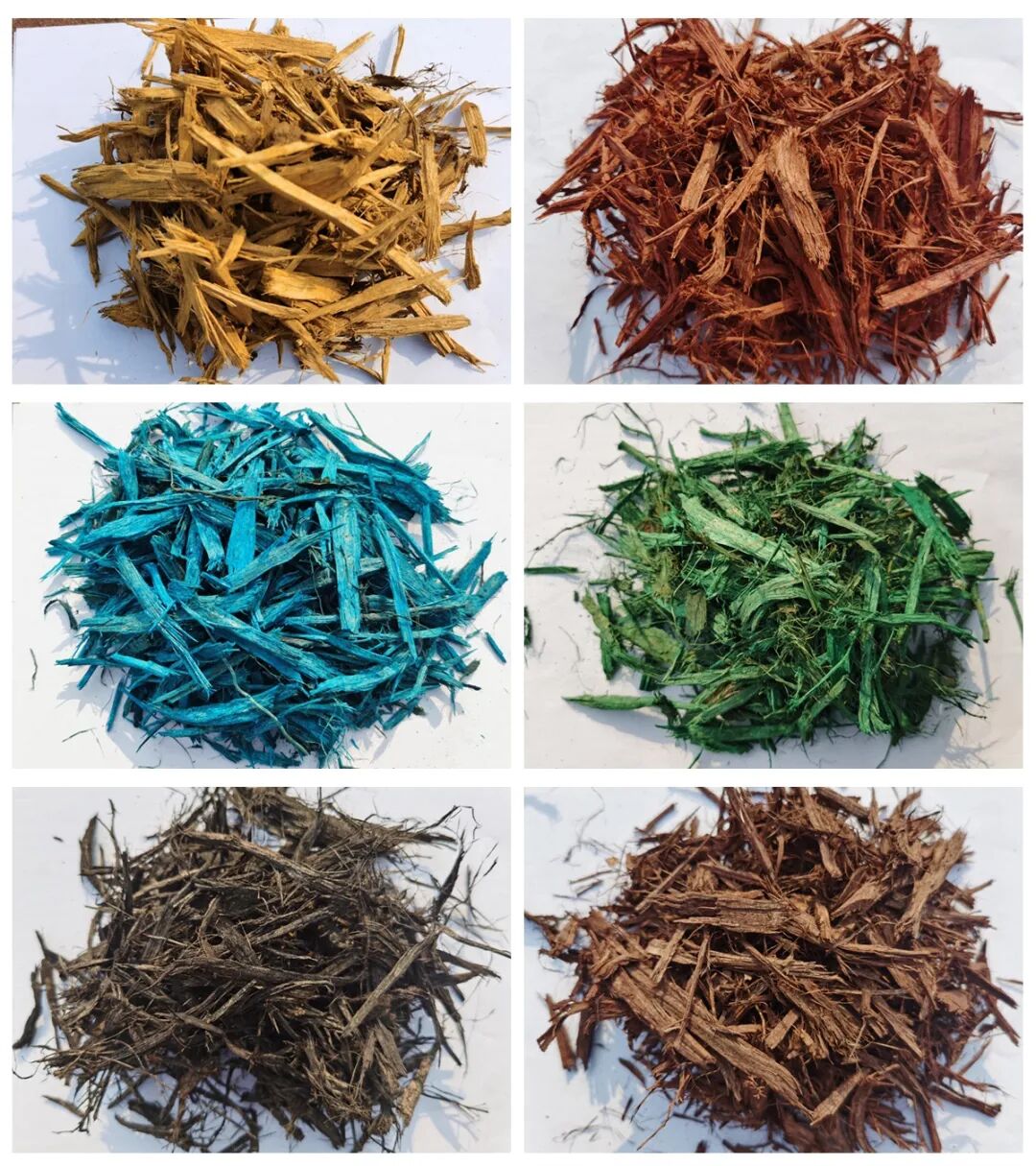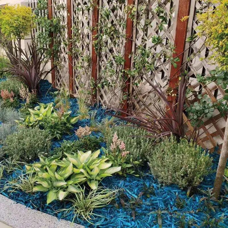 彩色有机覆盖物颜色丰富多彩,除了自然的原木色,用的最多的植物染色剂的颜色是黑色、红色和棕色,现在常用的也有蓝色、绿色、黄色等。