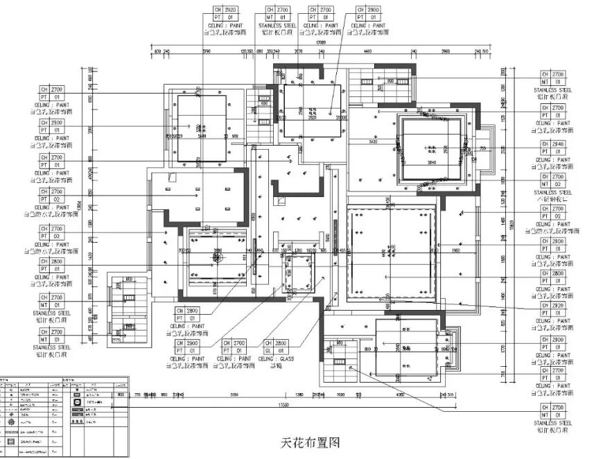 天花类平面系统的深化图纸需表达的内容很多,大体可分为装饰类与设备类两大类别。