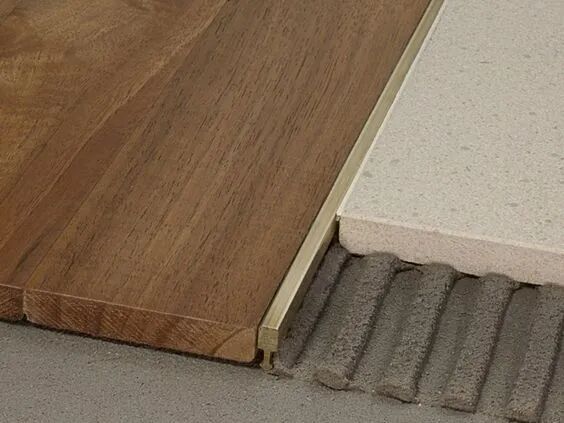 还有可能不需要门槛石,用金属嵌条,做法如下: