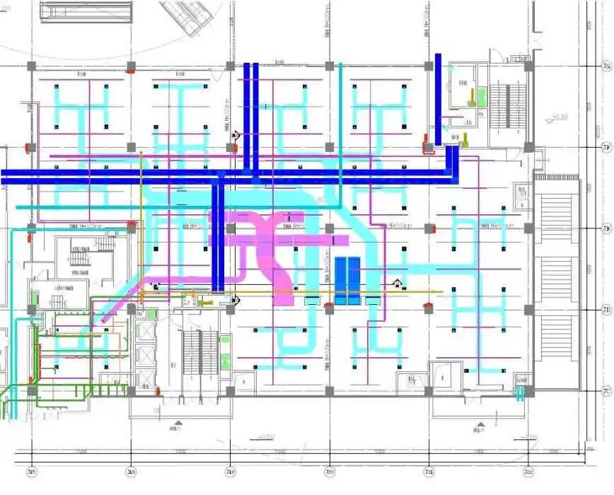 把天花平面深化图纸交给暖通、电气、给排水等专业进行复核。或许有的小伙伴这个时候会有疑问,为什么还要给暖通,我们不是商量好了吗?哎,你太天真了,那是初步的共识而已,路还长着呢,变数很多的