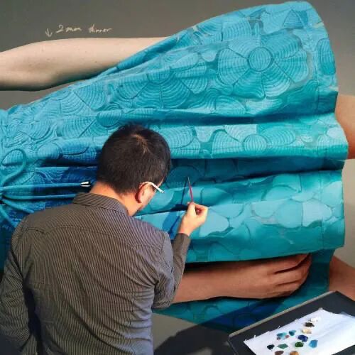 在国外,超写实画家数量众多,不过,能凭借超写实画作得到人们认可的并不在多少,这位神秘的超写实画家恰好是其中之一,归其原因就是因为,他的超写实作品十分精彩,精彩到让人会将其当做一幅写真照片,而不会想到它是一幅油画作品,在他的作品中,我们仿佛可以触摸到人物的皮肤,画作中描绘的年轻女子穿着非常复杂的服装,让人叹为观止。