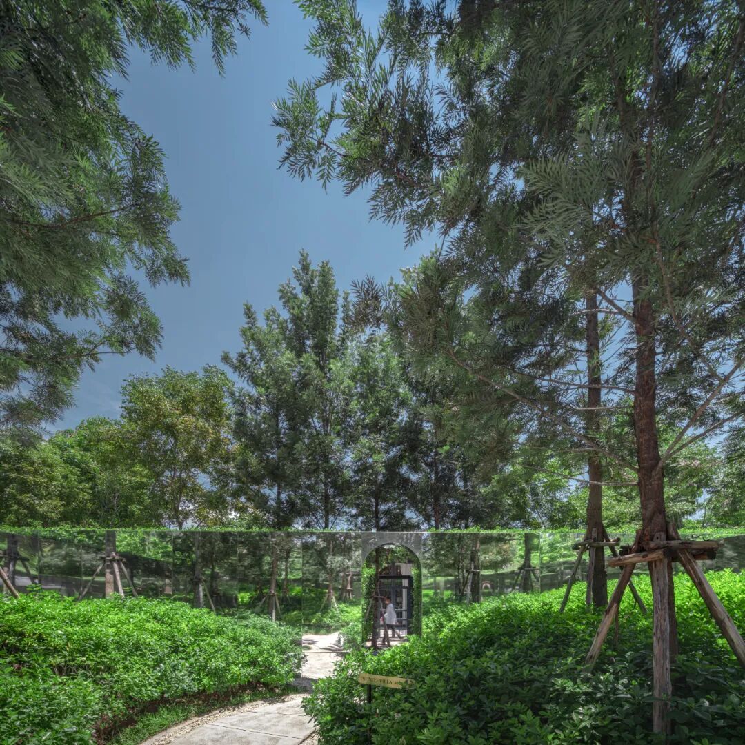 In the 3rd zone, The Infinite Forest, anarrow walkway with high bush wall on both sides cutting through the groups of villasbefore opening up to a mirror maze in the middle of the zone. The area hassymmetrical winding walkways and enclosed with reflective walls, creating anillusion of infinite walkways and space. The maze will amaze visitors and offerthem experience of discovering a secret place amongst a deep mysterious forest.