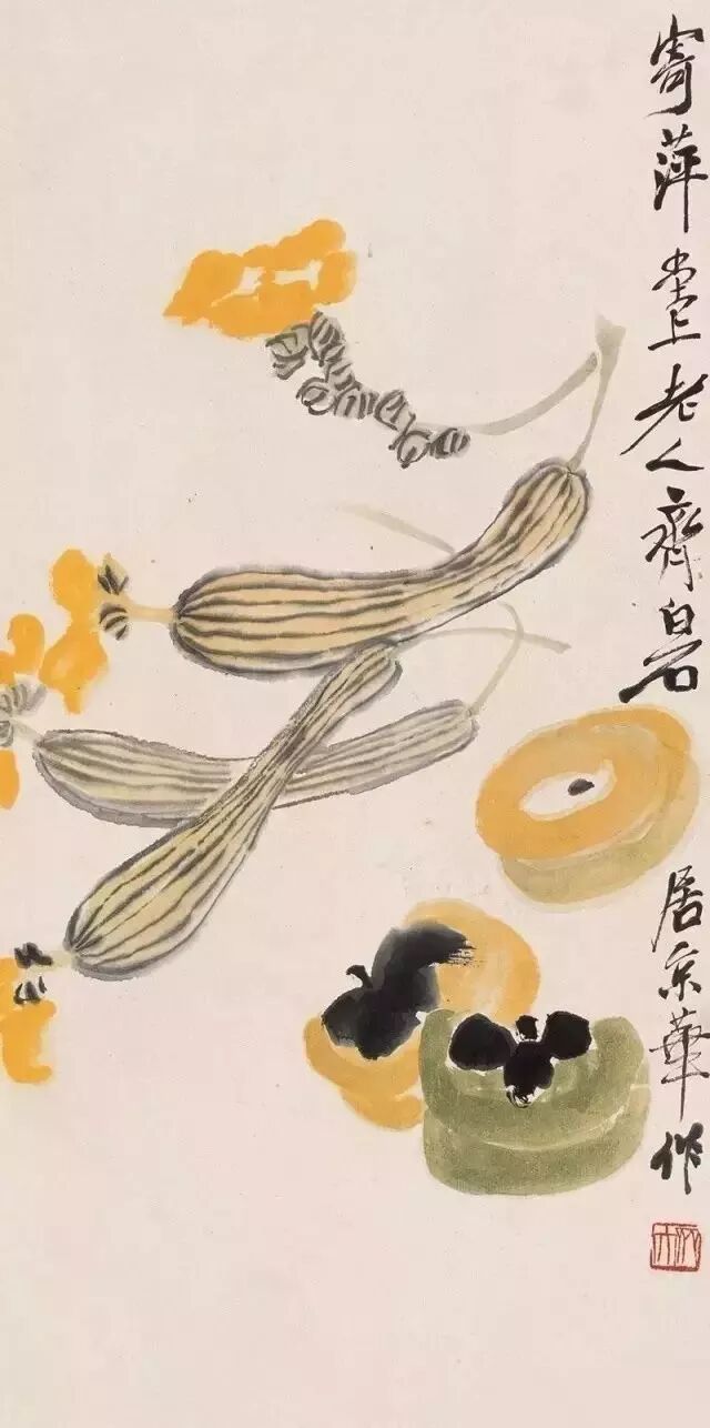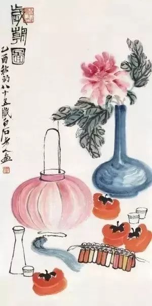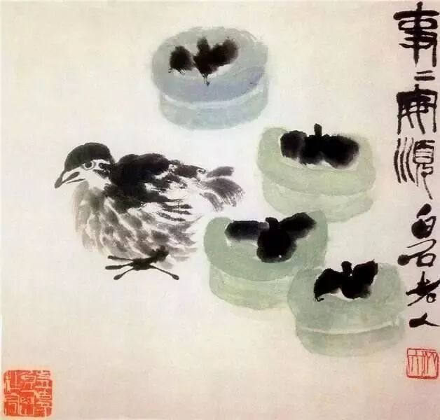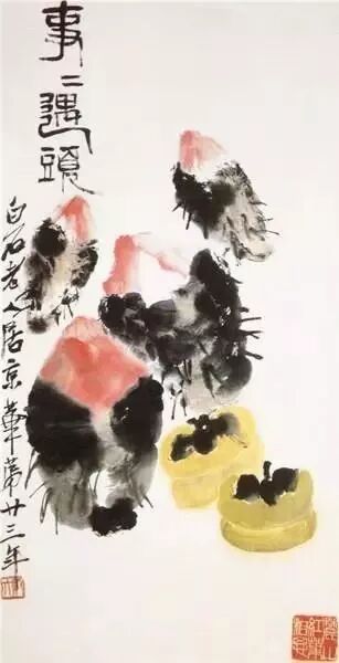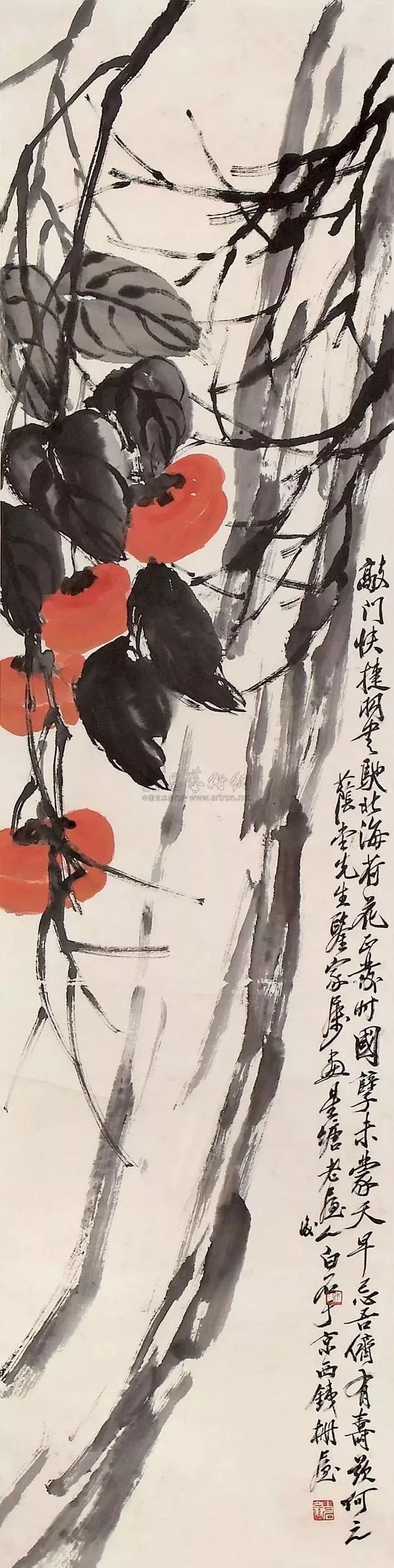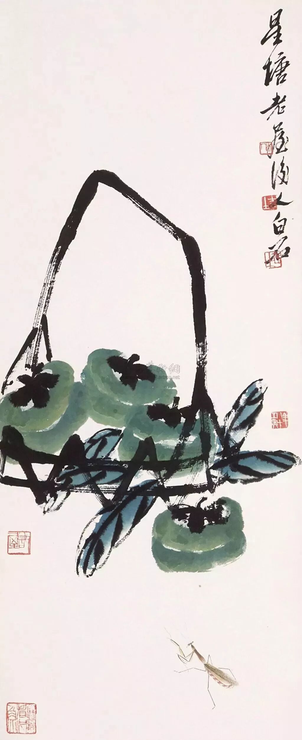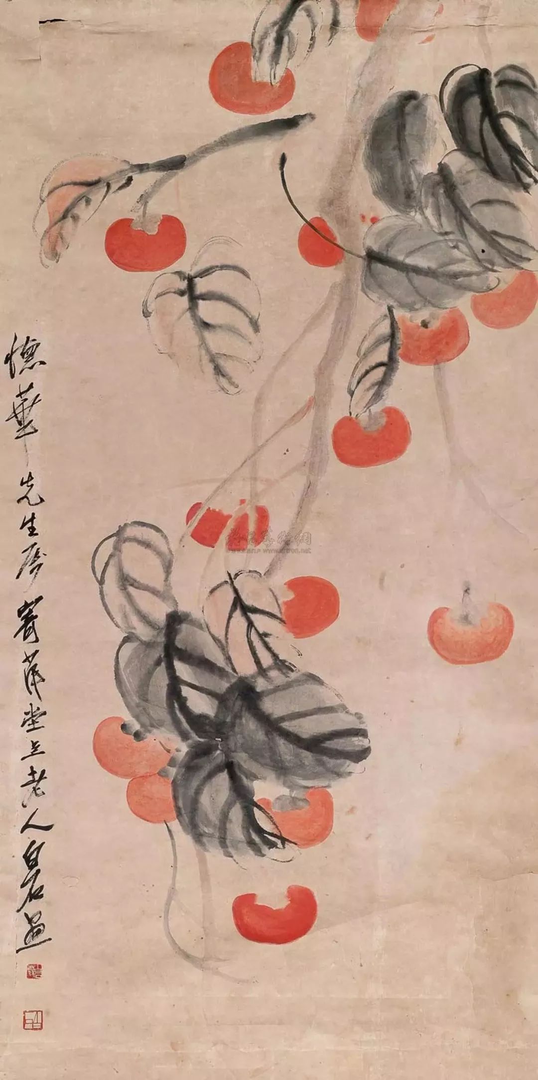 柿子是齐白石最常画的题材之一,因“柿”与“事”、“世”等字谐音,有吉祥的寓意。