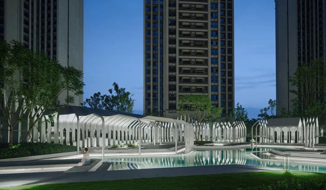 重庆融创文旅城作为一个全国性的IP式综合产城品牌,在其住宅产品的打造上,用一种休闲与放松相结合的度假式花园空间为理念,让人们从烦躁而喧闹的生活中回到家时,可以找到一片内心宁静的净地,项目将“水之涟漪”作为设计理念,在灵动的波纹与水岸人居的碰撞后,引出为“森活八境”。