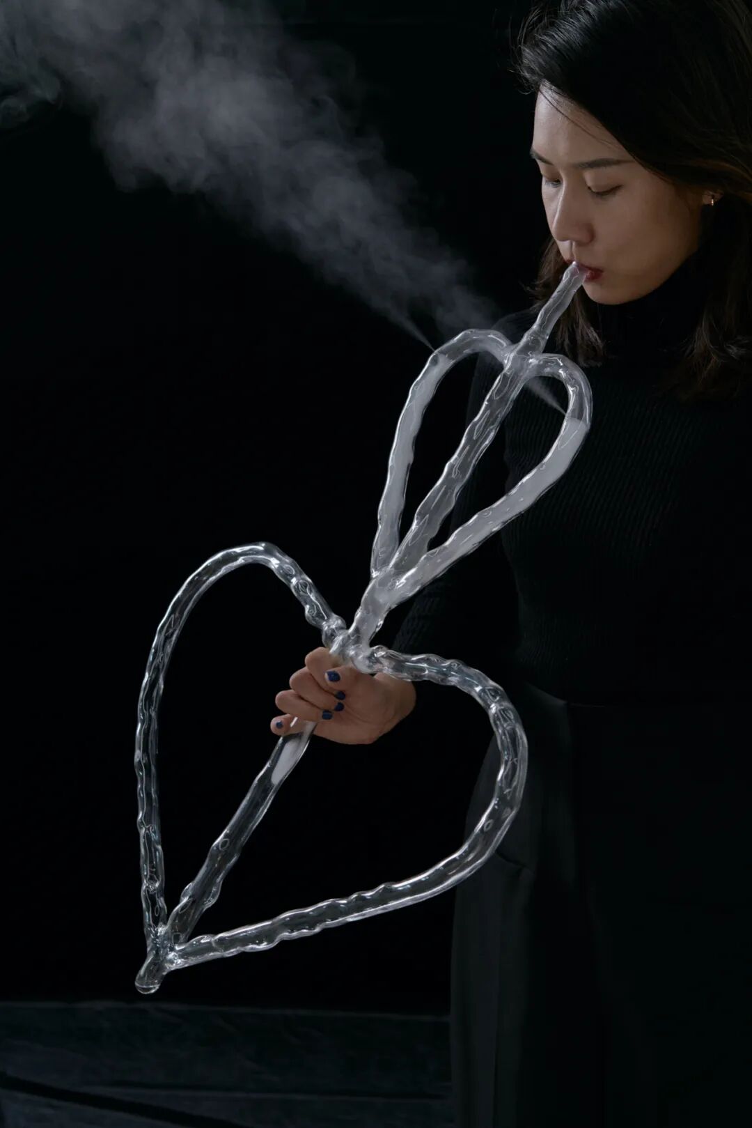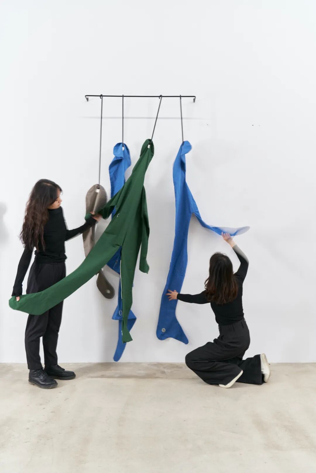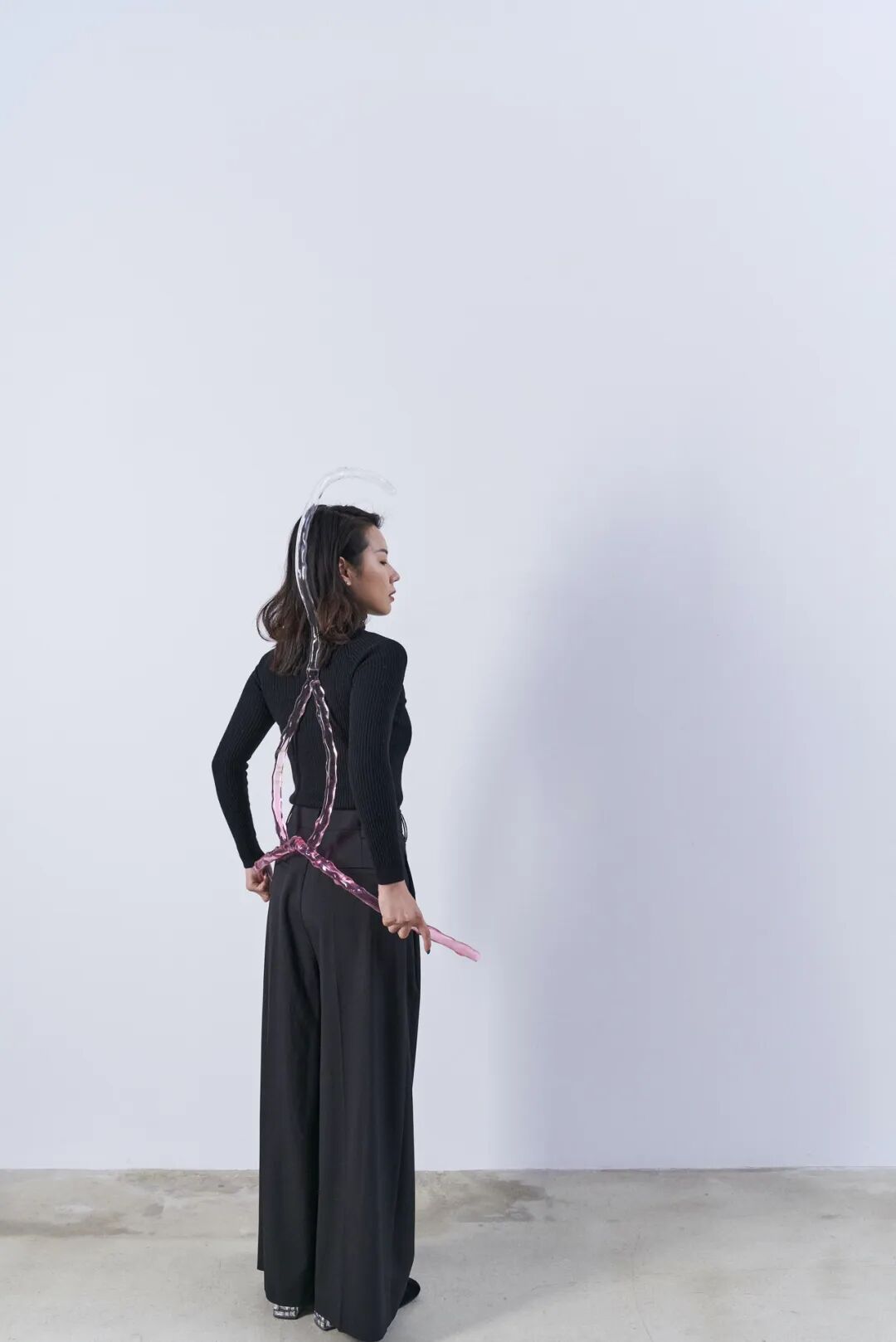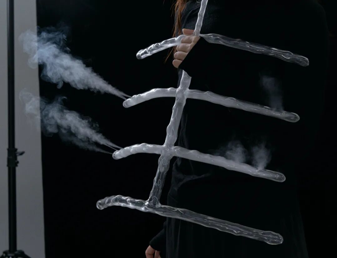 本次展出的作品延续了她一贯的创作理念,将作品融入到表演中;表演往往与身体和空间相关,编排上并无等级区分,关乎短暂性、脆弱性和本体固有的多元性。她将世界想象成一个混合、交叉和相互作用的动态星团,而非由相互分离区隔的实体构成。她受 間”与“侘寂”概念的启发——它们分别指向事物和时刻之间的间隔,以及不完美、无常或残缺——并在展览空间中创造了亲密感十足的物与动作,在空间中 持续着生成的动态。