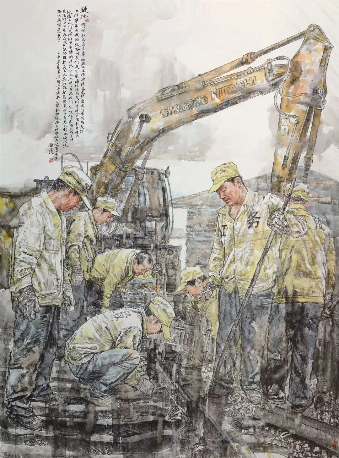 擎天巨臂—港珠澳大桥建设者之三/中国画/ 250cm×200cm / 2018年