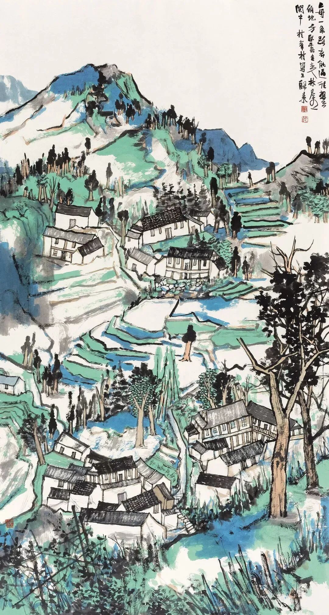 走进绿水青山/ 中国画/ 178cm×96cm / 2019年