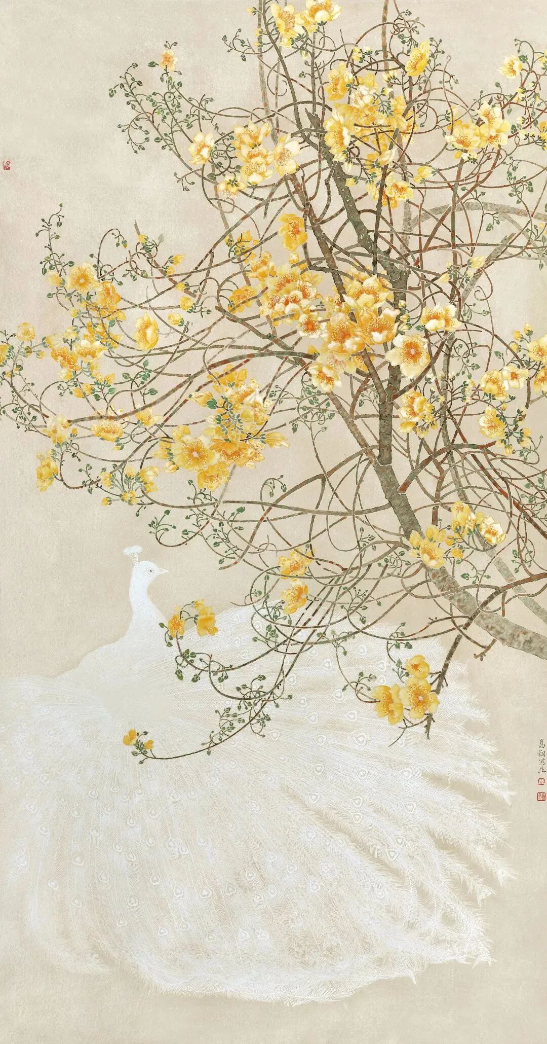 洁羽金花/ 中国画/ 180cm×96cm / 2017年