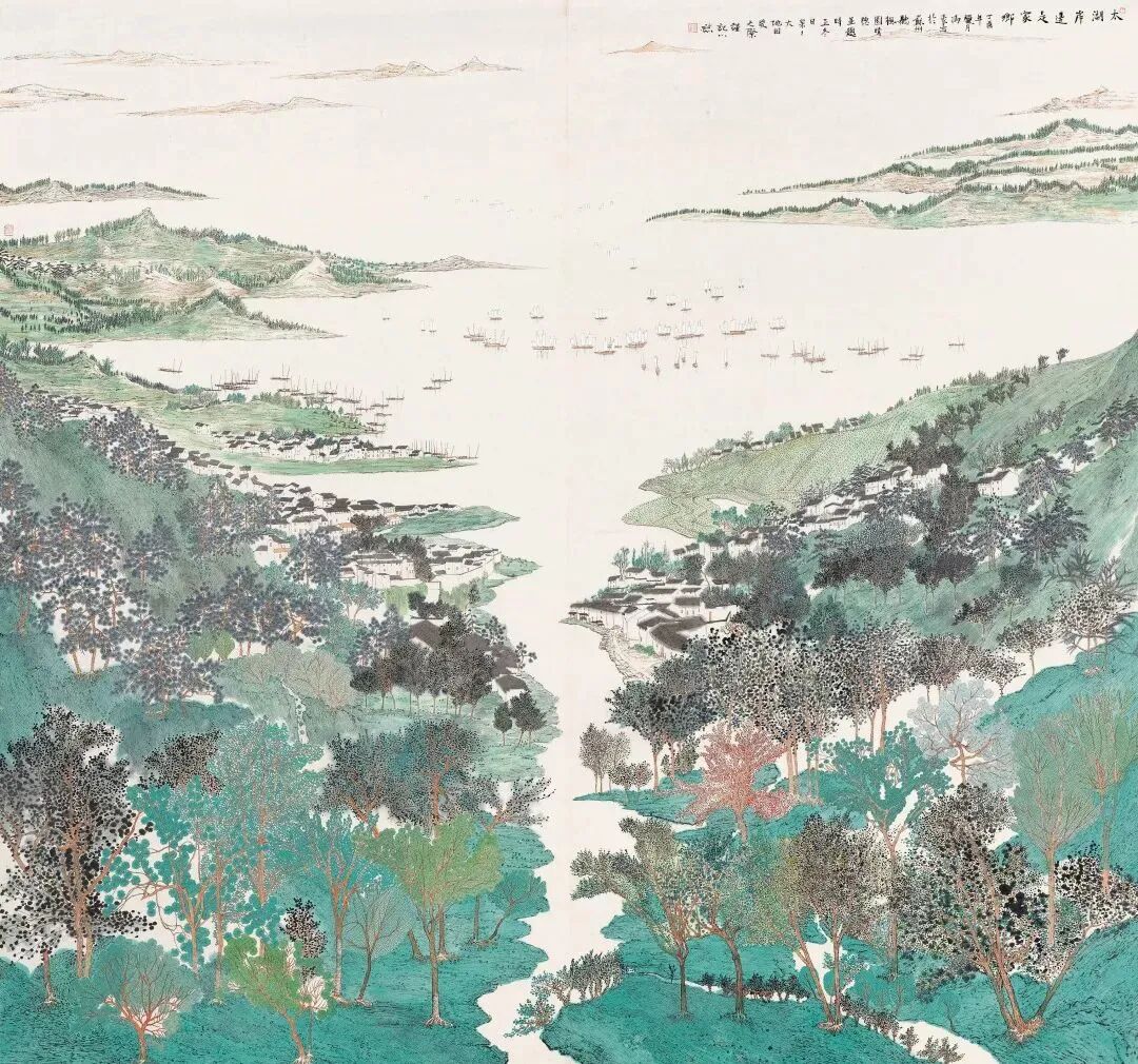 太湖岸边是家乡/ 中国画/ 180cm×180cm / 2017年