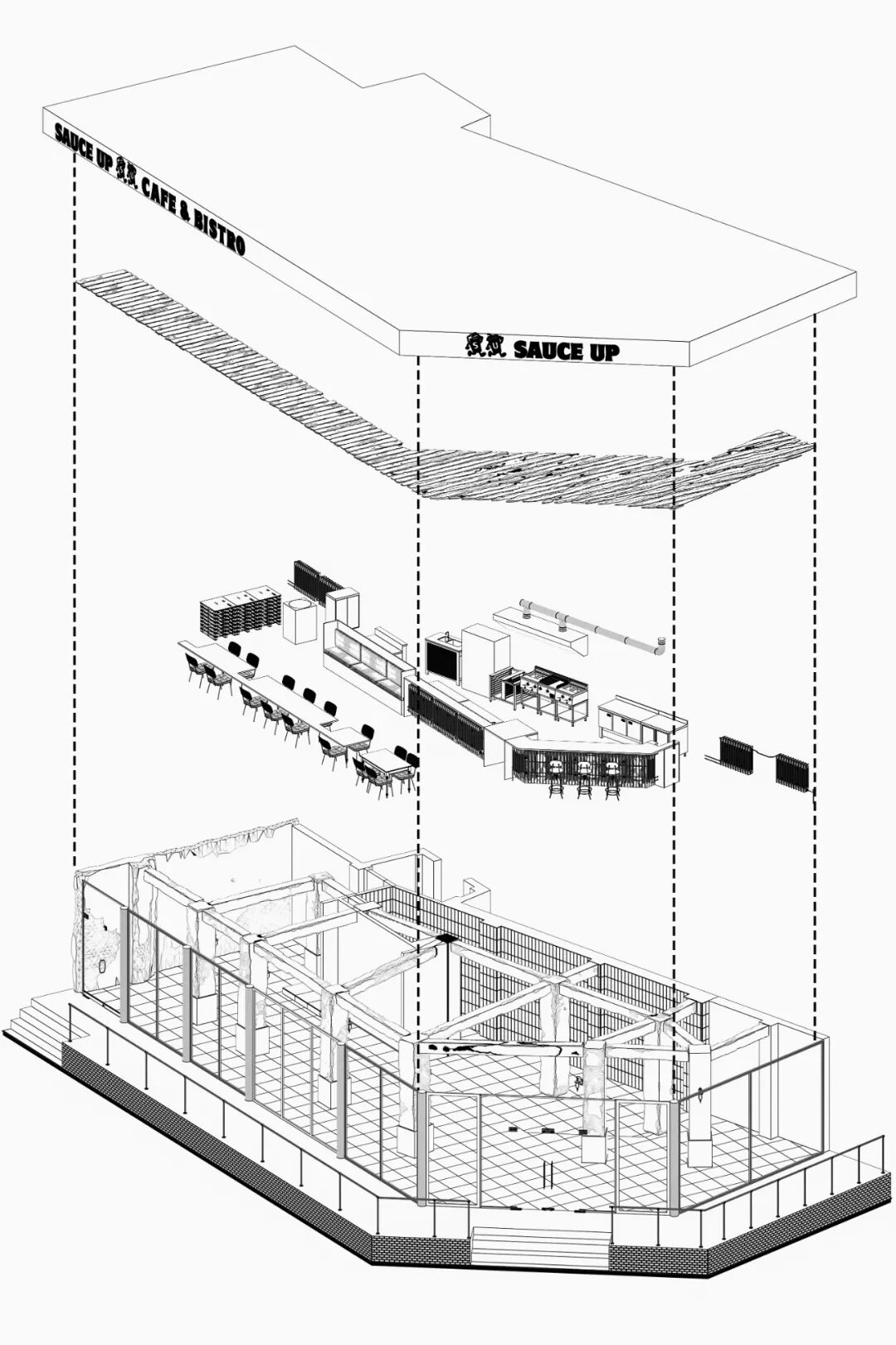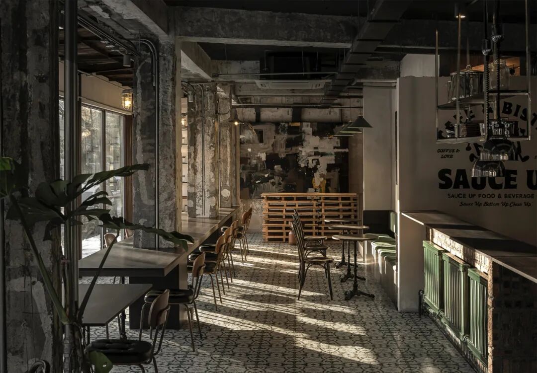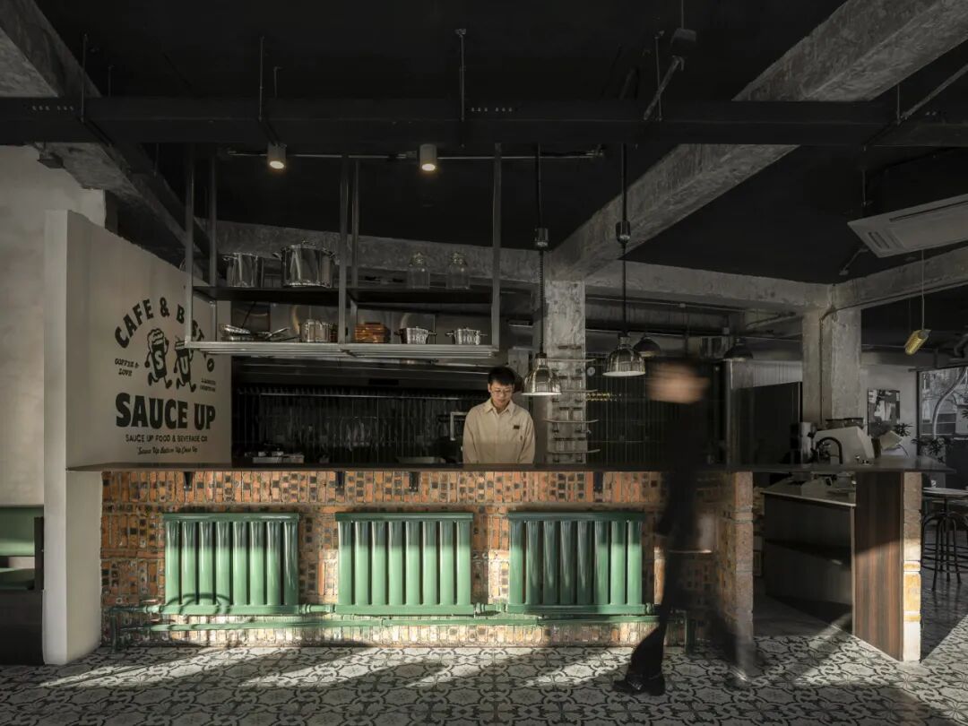 SAUCE,丰富的调料般自由奔放。BISTRO,轻松的就餐气息。我们希望SAUCE UP BISTRO是美食与人自由交互的场所,通过空间构成关系与色彩的碰撞,呈现丰富的体验。