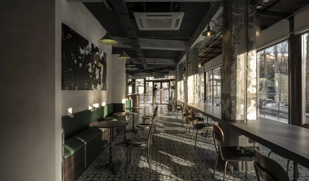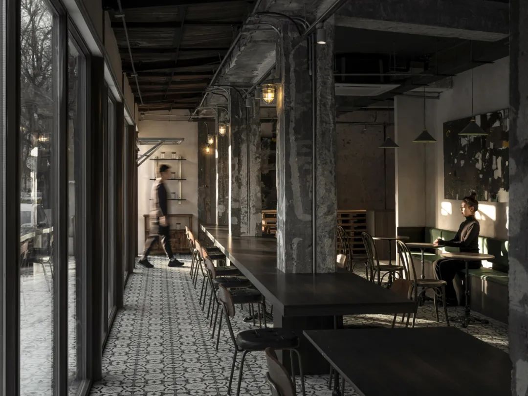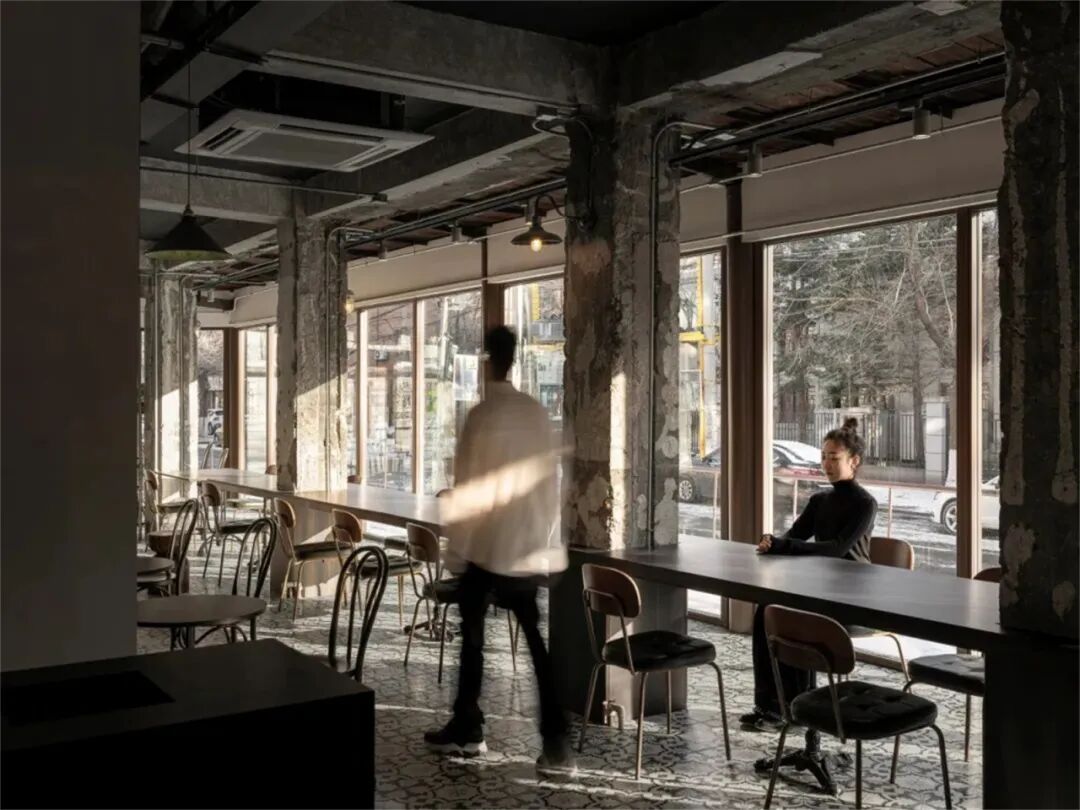 项目位于沈阳市老城区两面临街的一楼,场地前身是一家生鲜超市,室内原始状态是开敞的空间,由两侧通透的落地玻璃围成。