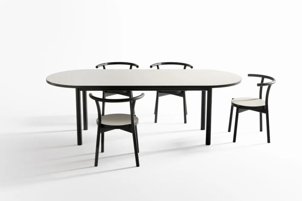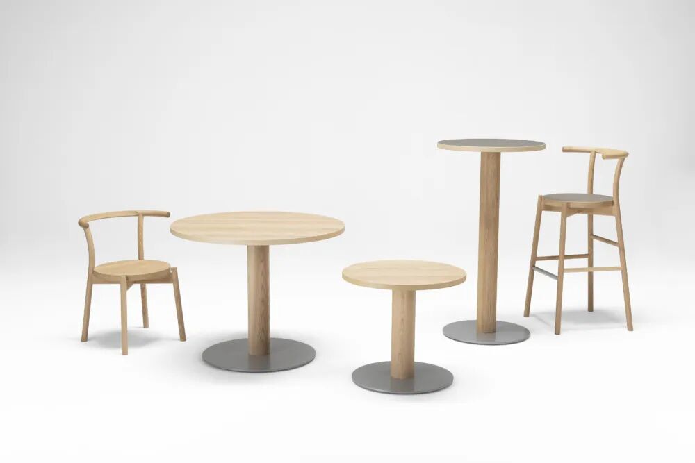 这是深泽直人为日本CONDEHOUSE设计的桌子,搭配设计的凳子,形成系列化。