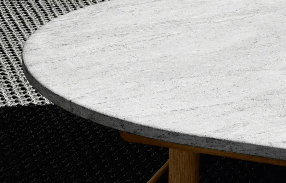 桌子由柚木和蛇纹石台面组成,简约又不失优雅。