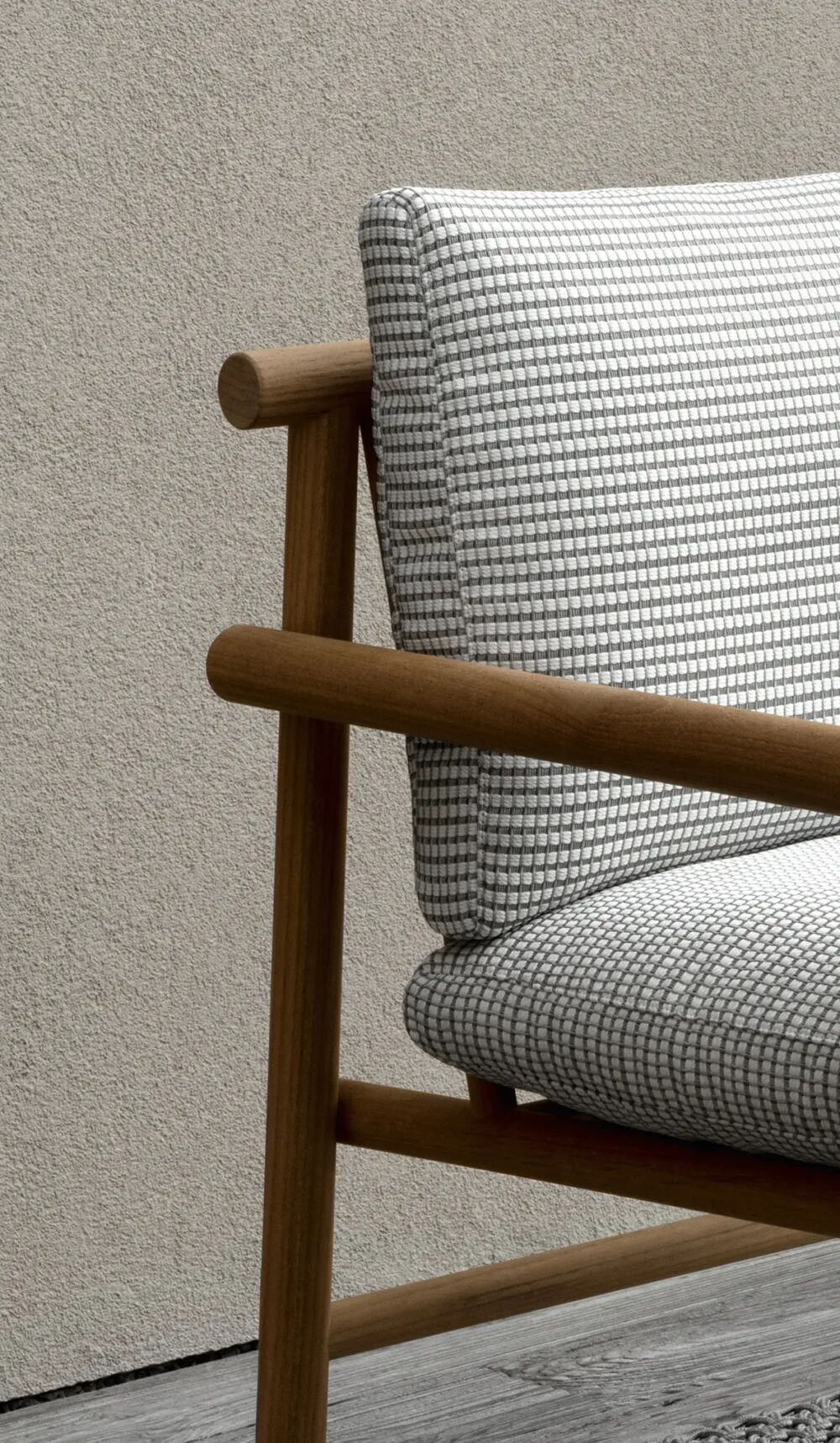 沙发的扶手较低,可以与易于固定的可移动垫子组合,营造出舒适的体验。