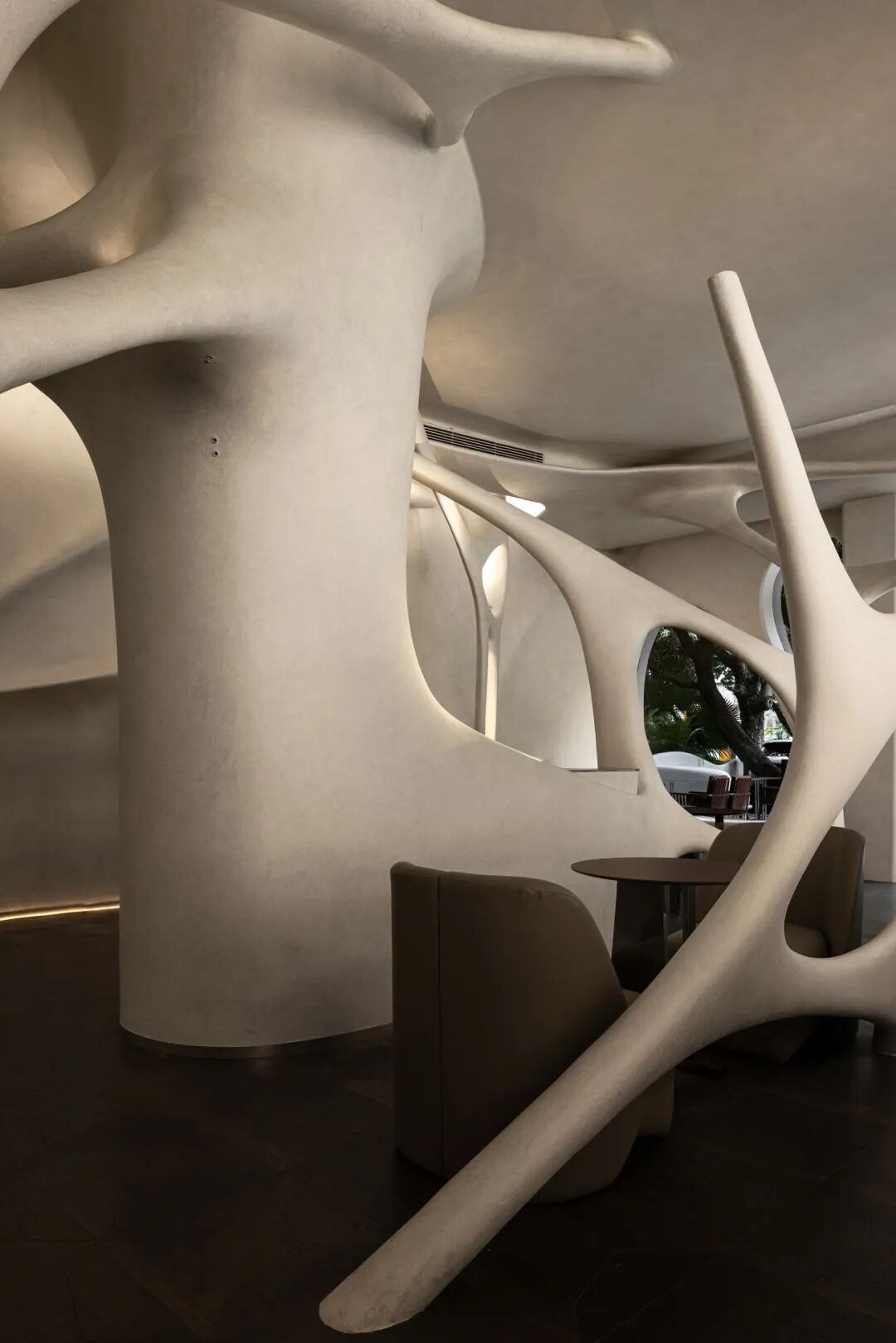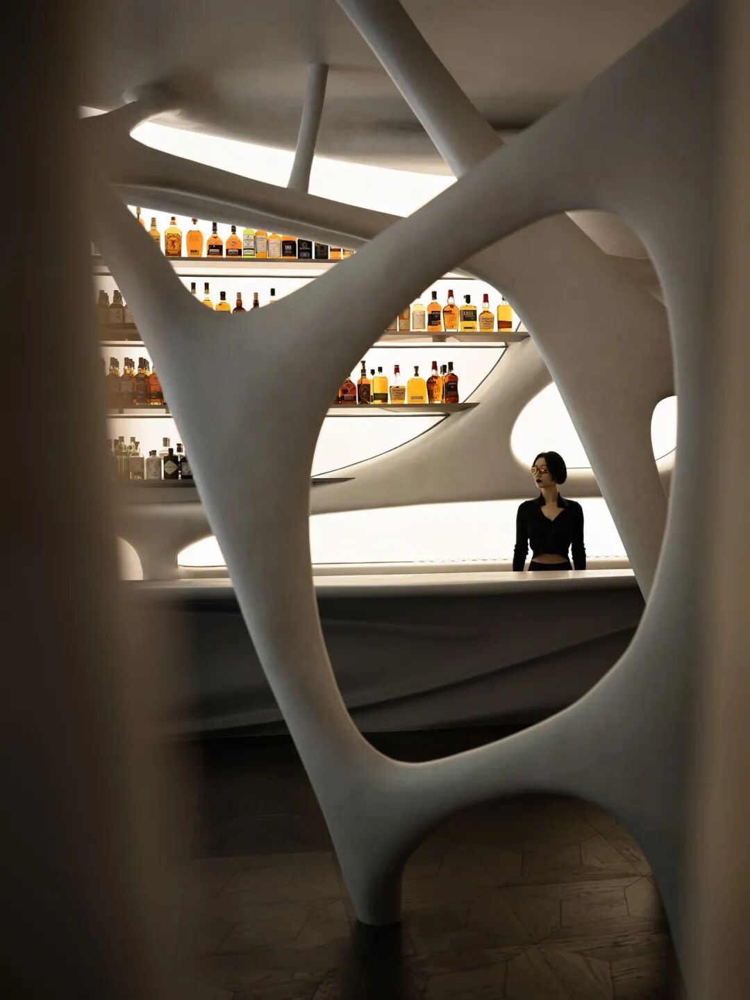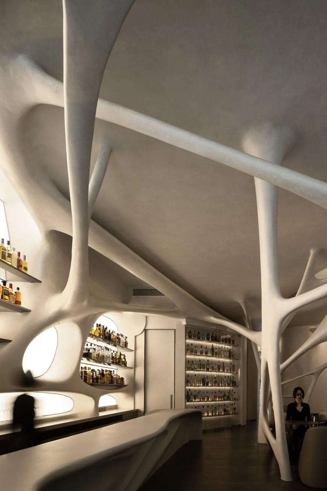 The entire space is internally free and can function in different scenarios. The sense of fluidity of the space creates a dialogue with people and forms a dynamic scene. The form of the space is full of imagination: it can be a cave, a space capsule, or a neuron... It can flexibly switch between the leisure of a cafe during the day and the excitement of a whiskey bar at night.