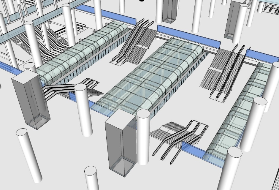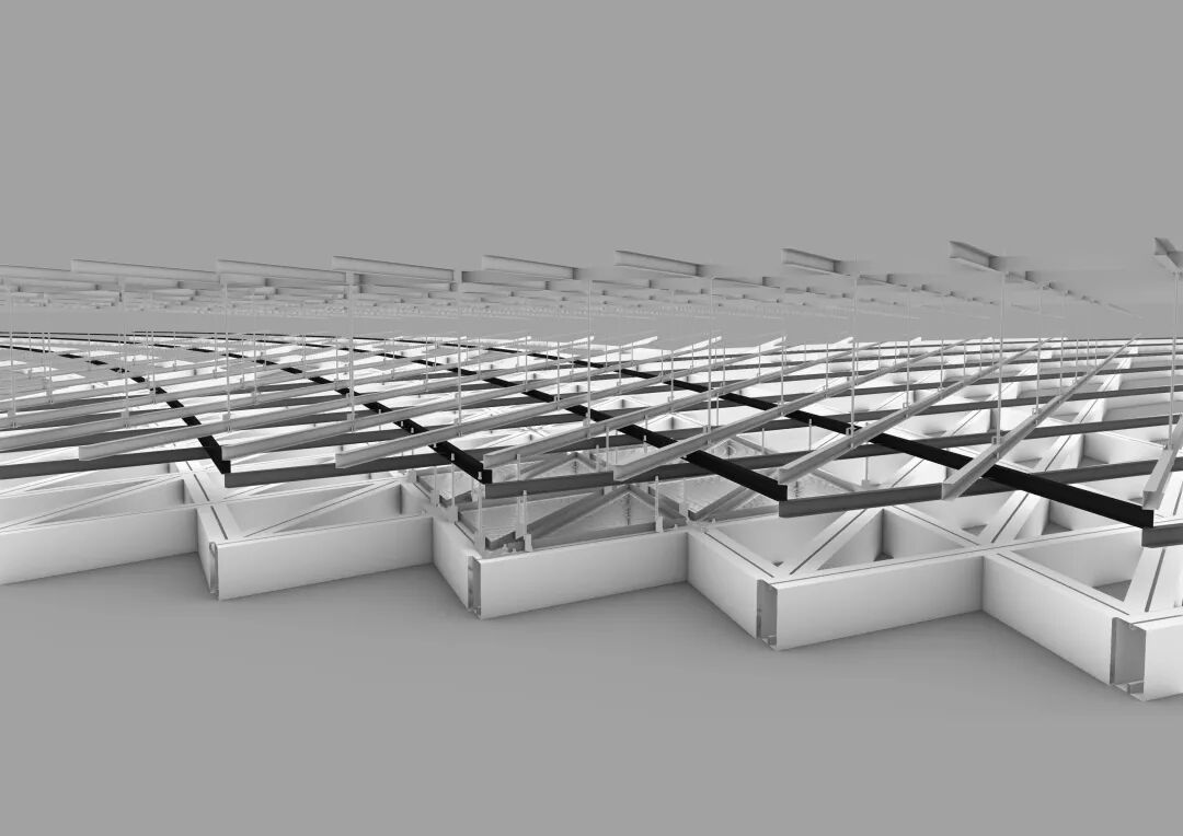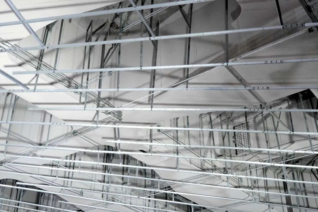 优化后龙骨对表面造型的影响明显降低,原设计中的天棚张拉网得以取消,一方面是对投资造价的节约,另一方面减少了未来设备检修的困难。