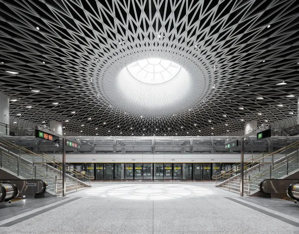 设计优化历时两年,而站厅层实际装修施工时间仅7个月,公建项目的设计优化为何如此重要?为还原天花“费马螺线”的数学美感,施工的重难点在哪?中庭轨行区防火玻璃系统是国内首次运用,有哪些技术经验可以分享?