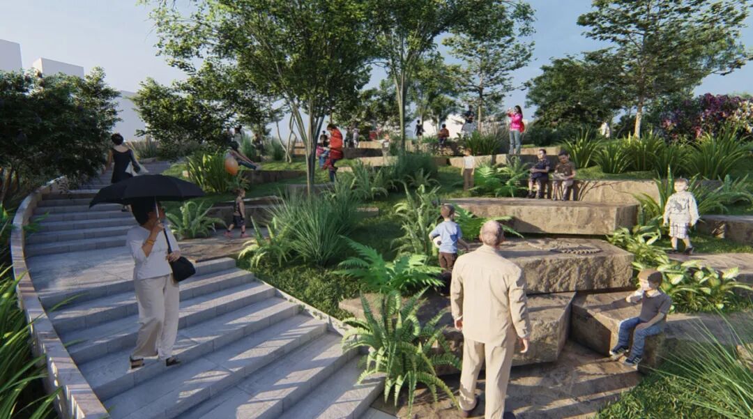 景观设计有意模糊了人为与自然生态系统之间的界限,使两者相互交织——建筑的终点与景观的起点融和。