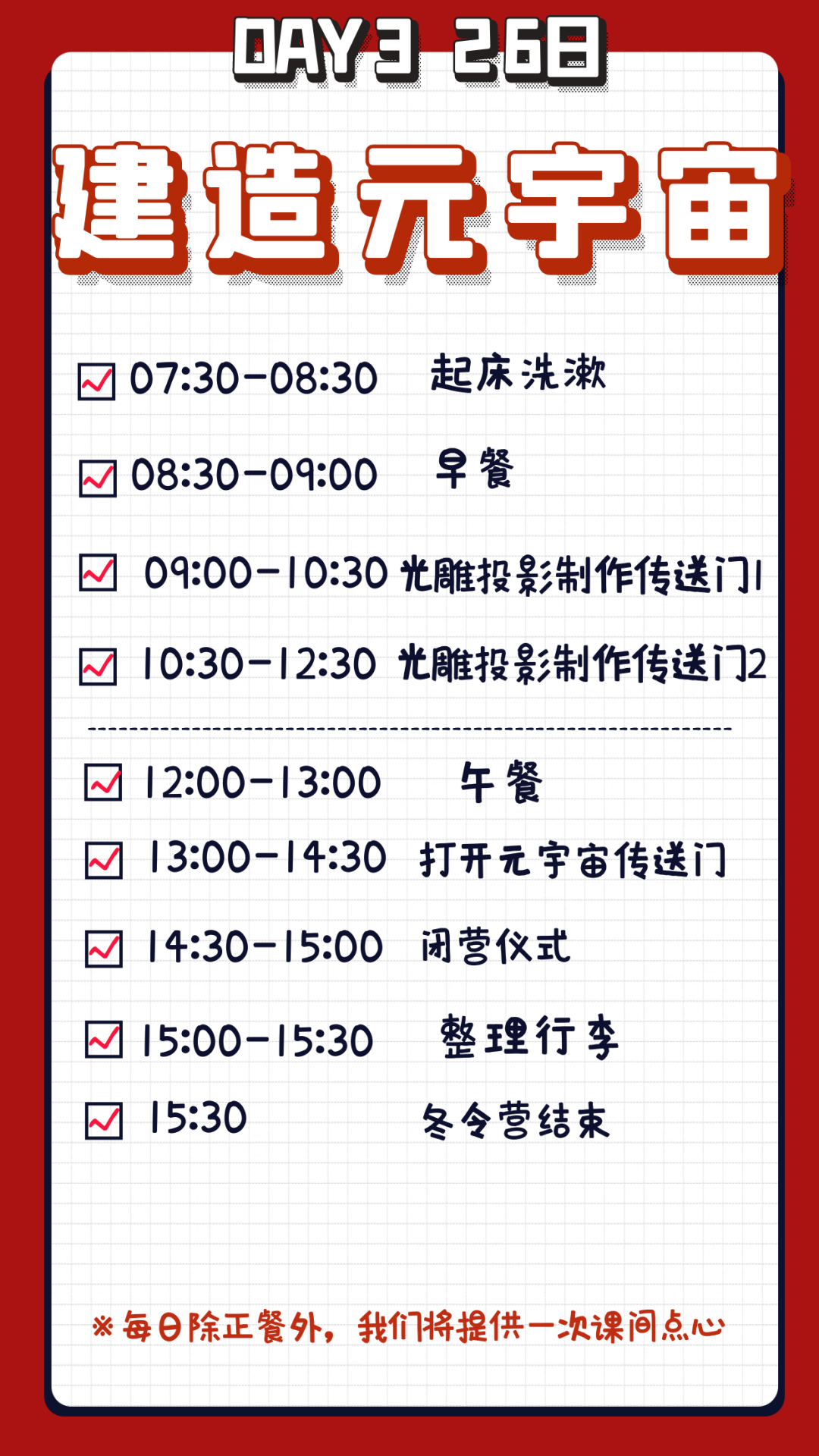 元宇宙正处于一个萌芽的阶段,如果元宇宙将成为一个充满无限丰富、乐趣的社区和生活场所,我们希望能为孩子们和营员们创造一个开放的环境拥抱元宇宙的新技术和文化前沿。并为孩子们和营员们提供一个引导他们在元宇宙中畅游的蓝图。