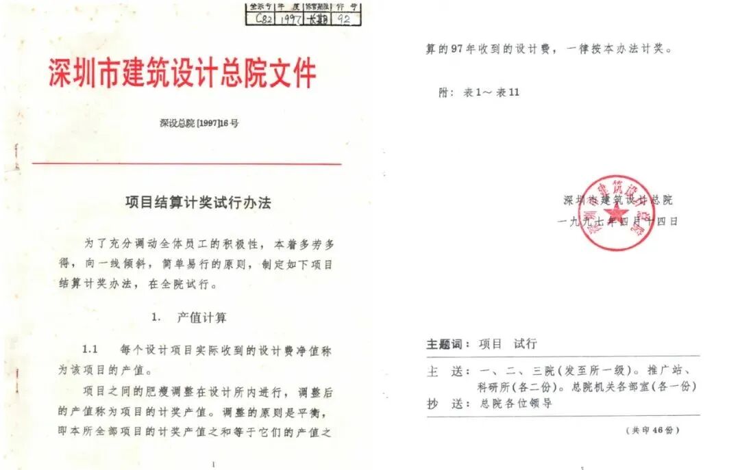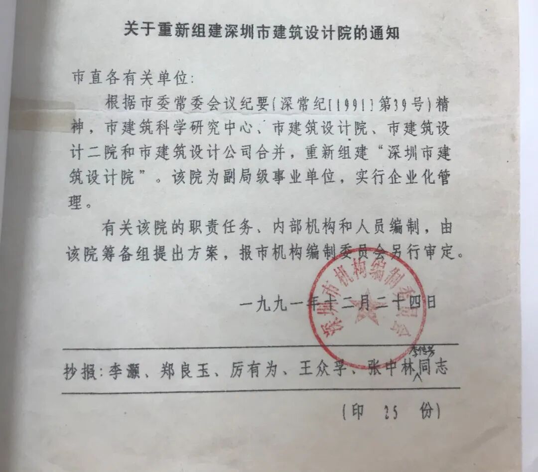 东方风来满眼春。1992年1月,邓小平同志南巡再次视察深圳并发表重要谈话,改革开放进入一个蓬勃发展的历史新时期。在“发展才是硬道理”的信念驱使下,深总院的前身单位积极应对,进一步完成机构管理改革。5月26日,深总院在机构编制体制上实行“院-分院-设计室”三级管理和院、分院二级核算方式,下设第一分院、第二分院、第三分院、新技术推广部、市建筑科学研究所,均为正处级事业单位。1993年7月9日,深圳市建筑设计院更名为深圳市建筑设计总院,原第一、第二、第三设计分院分别更名为深圳市建筑设计总院第一设计院、深圳市建筑设计总院第二设计院、深圳市建筑设计总院第三设计院。新机构带着新气象,迅速加入新一轮的城市建设热潮。1997年6月27日,深圳市建筑设计总院更名为深圳市建筑设计研究总院,为后来开展学术研究、提升专业水平做好准备。
