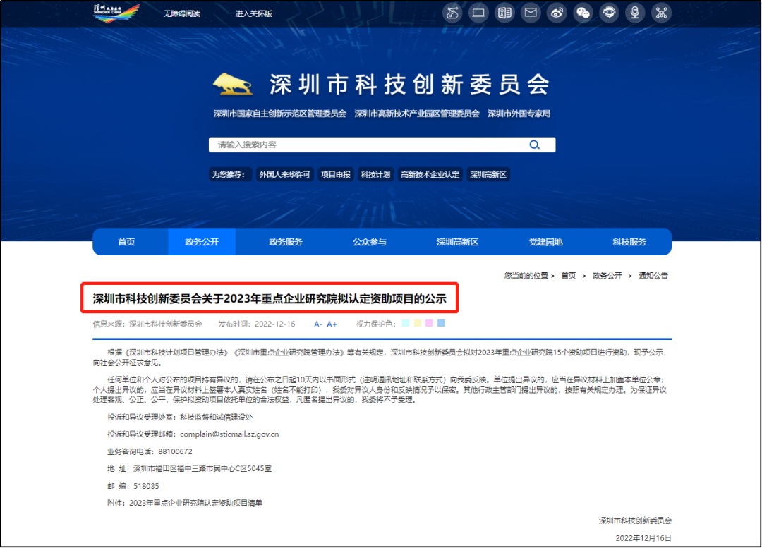 正发生2023-04-21 深总院先进技术研究院获深圳市科创委2023年重点企业研究院项目认定与资助 12月16日深圳市科技创新委员会对2023年重点企业研究院15个拟认定资助项目进行公示,并向社会公开征求意见,现公示期已满。其中,深圳市建筑设计研究总院有限公司先进技术研究院获该项目认定与资助,资助金额为1000万元。 深圳市科技创新委员会重点企业研究院项目资助对象为深圳市内具有较强科技研发能力、拥有深圳市工程实验室等创新载体、并设有科技创新相关研究院的企业,每年认定资助项目不超过30个,单个项目资助金额最高不超过1000万元。 深总院积极响应和把握该项目的认定与资助机会,在深圳再生混合混凝土利用工程实验室的基础上,整合全公司资源,成立深圳市建筑设计研究总院有限公司先进技术研究院,聚焦绿色低碳、建筑数字化、产业园区规划和装配式建筑等重点领域。申报工作由公司领导直接统筹,研究中心负责落实具体申报工作,质量管理部、总工办、财务管理部、结算中心、人力资源部、行政管理部与科技信息部协同配合,各分公司、院所等相关单位提供重要的技术与人才支持,在全公司的通力合作下,最终成功申报,并获得最高资助金额。 本次重点企业研究院项目的认定通过,是深圳市科创委对深总院多年来坚持科技创新、高度重视研发所做出的工作和取得的成绩的充分肯定,也体现了深总院作为市属国有大型设计院所肩负的责任与担当,鞭策深总院人坚持守正创新,推动关键核心技术攻关,争创国际领先技术。 内容来源:研究中心 深总院品牌部排版发布 本文来自微信公众号“深总院”(ID:SZ_SADI)。大作社经授权转载,该文观点仅代表作者本人,大作社平台仅提供信息存储空间服务。 TAGS: 公司研究院资助 相关文章2022年10月书法也有别…珠宝名表璀璨节日缤纷 | …MVRDV 受邀出席武汉大…黎晓亮:三个展 | 一场影…卡塔尔世界杯开幕式 土豪风…NFT行业周报:淘宝小程序…大师云集 • 献策狮城 |…【海外】《最后生还者2》制…2022年12月《综合艺术…索尼推出的首款汽车将成为“…