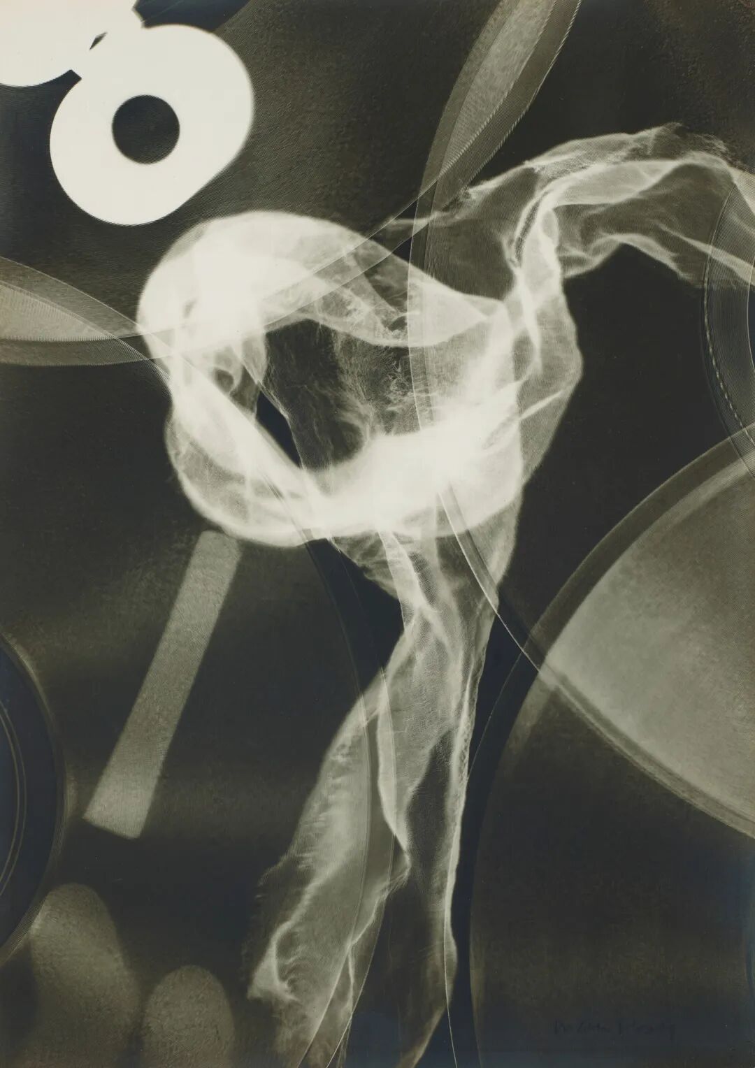 对具象与抽象之间的关系,他也很着迷,直接将物体放在感光相纸上曝光,留下的影子既具象又抽象,依稀可辨却缺乏细节。