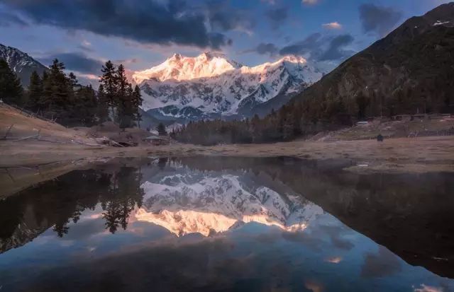 如果我们的主体是雪山,主题是想表达世界第三高峰-干城章嘉峰的雄壮威严。那么上一幅图无疑构图元素取得太多了,前景的草地不仅没有衬托出雪山的壮丽,反而占据了大量构图空间,让雪山显得很小。