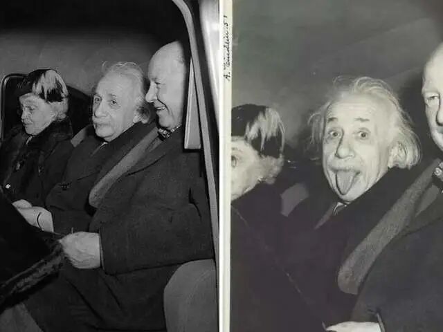 阿尔伯特爱因斯坦在他的著名照片前伸出舌头