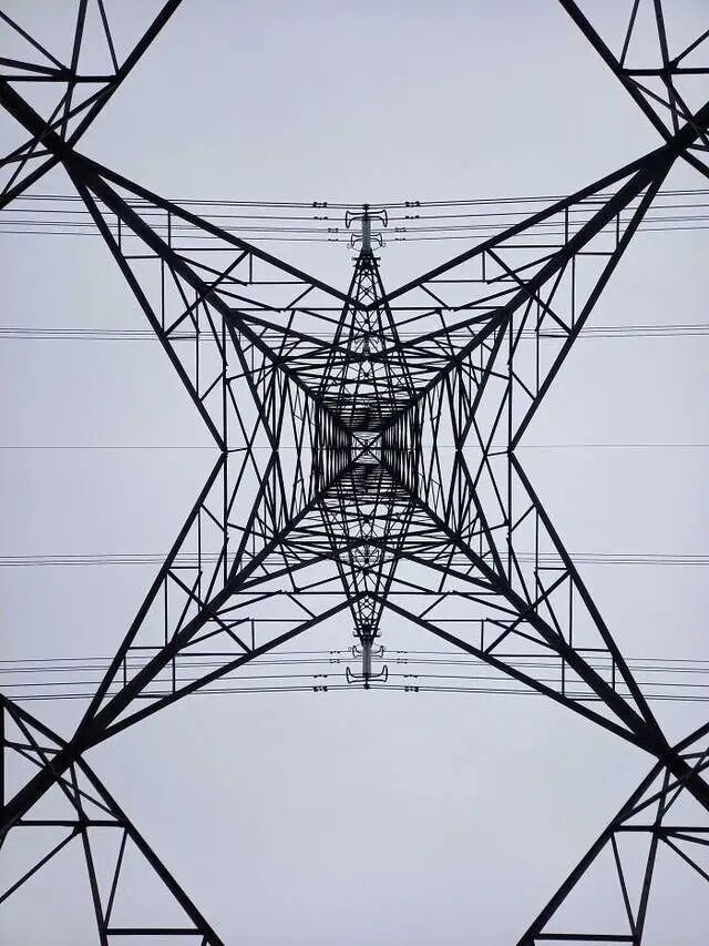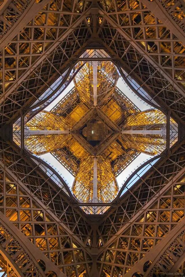 从电塔下拍摄,绝对的对称构图。