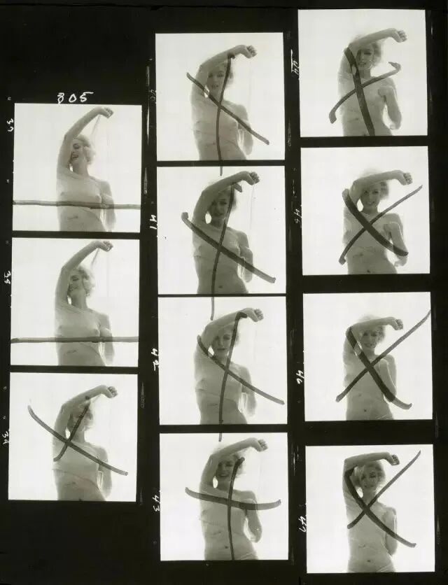 这些被玛丽莲.梦露亲手打叉的照片,反而又有了新的意义。