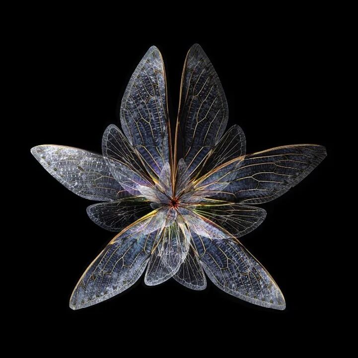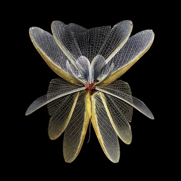 《模拟》这个系列的摄影作品,全部由不同昆虫的翅膀组成。在摄影过程中没有经过任何数字处理,也没有使用任何的特殊效果,拼凑昆虫的翅膀是整个系列作品最主要的工作。