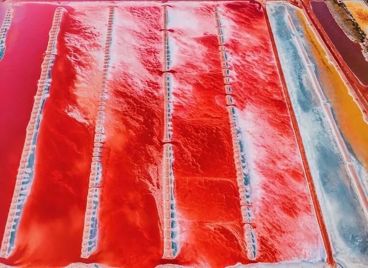 除了拍摄湖水和海岸线之外,这位摄影师还在构图中加入了一个模特,她为整个画面的分割增色不少,让照片更有层次感,也更加丰富,乍一看,是一片粉色,但仔细观察,又会看到其中夹杂的、红色、蓝色和黄色的部分,颜色融合得恰到好处,那种浪漫的感觉扑面而来。