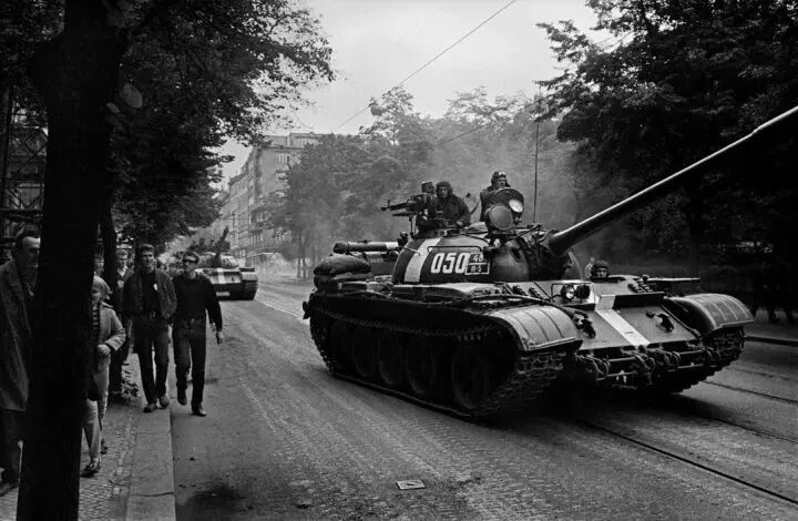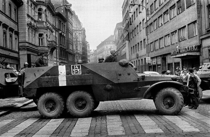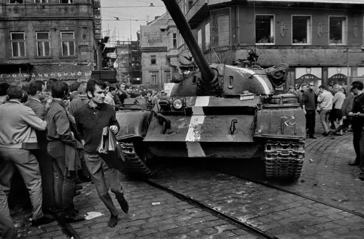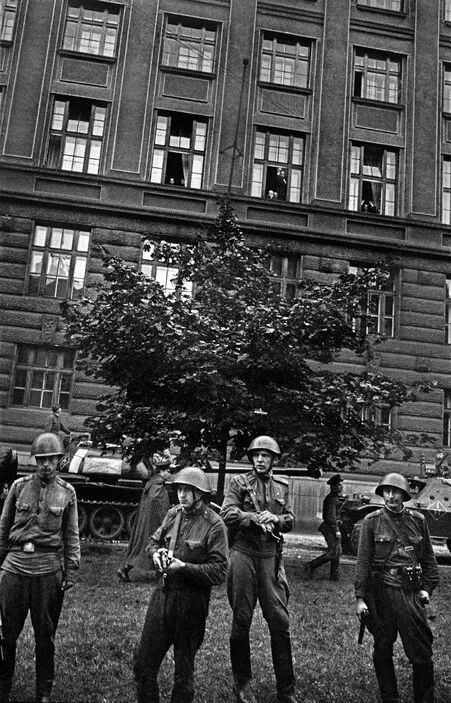 1968年8月21日晨,布拉格市民推开窗户,发现一夜间捷克已被50万苏军和华约部队。所全境占领。