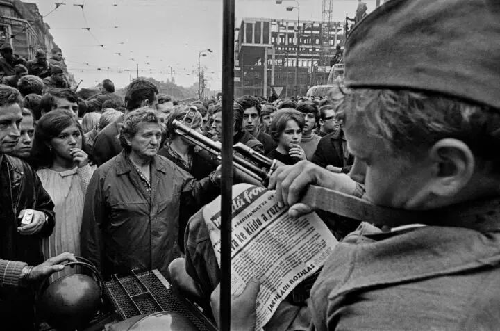 寇德卡听到了布拉格万物在孤鸣,人人皆悲愤。他要用镜头记录下混乱中的一幕幕。