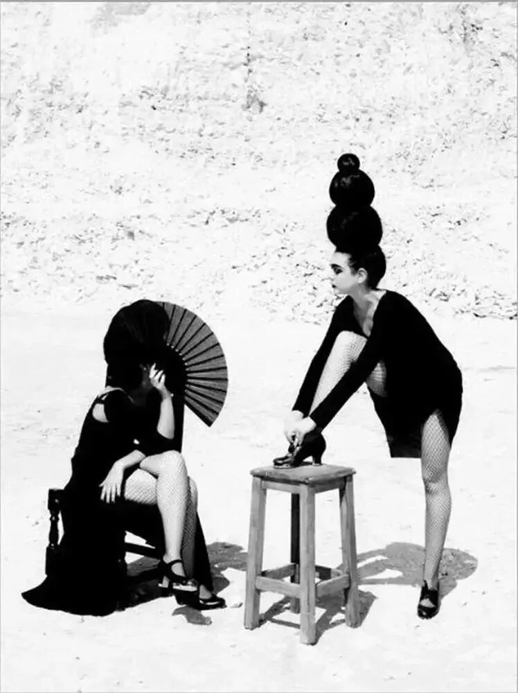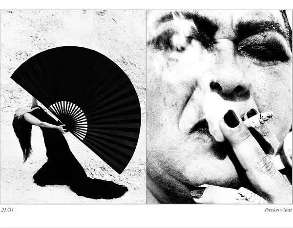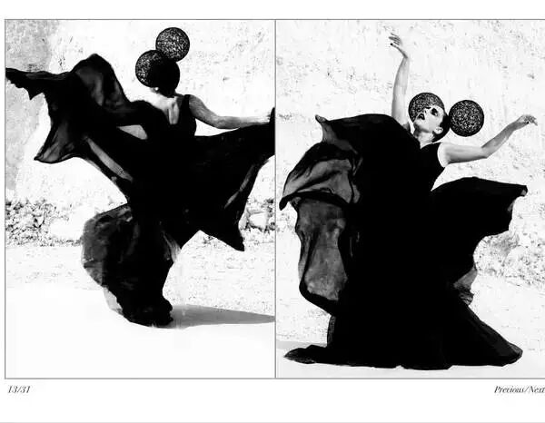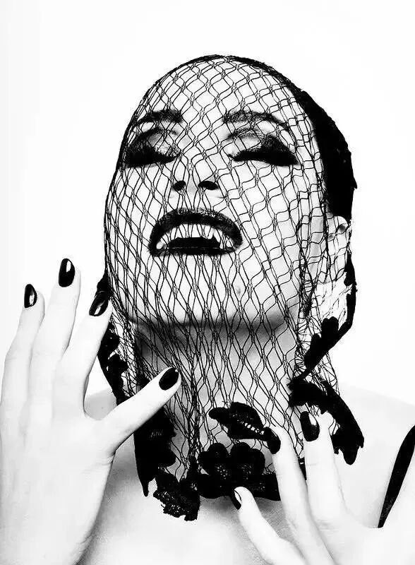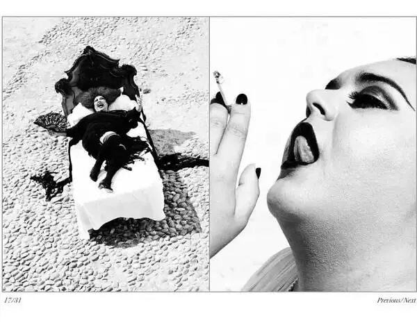 为了让拍摄的照片,有更强的视觉冲击力,Afanador用黑白两色的高反差,来表现妩媚的造型和构图。