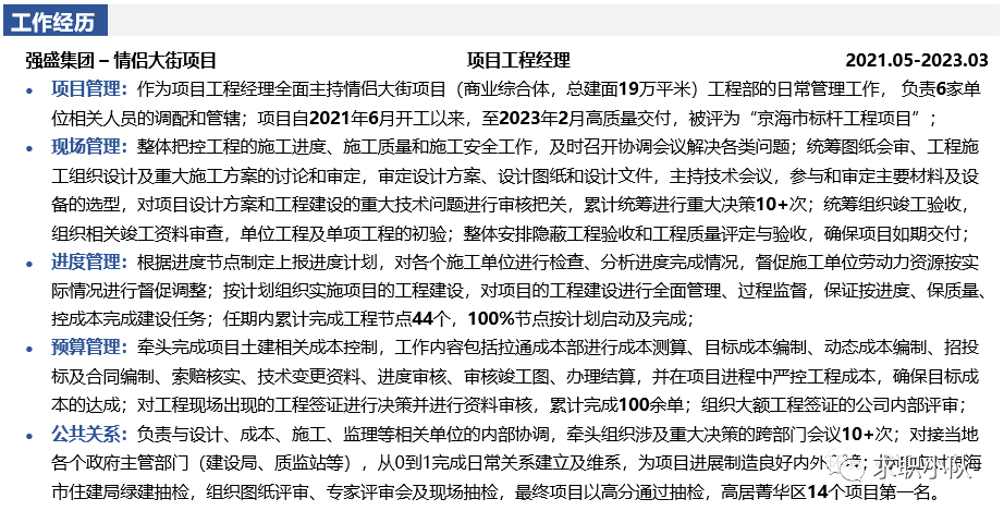 2.沉淀提升。在简历的通篇修订后,逐渐发现自己的核心竞争力所在,自然之后哪个位置的篇幅重,哪些经历的篇幅可适当删减,从而使HR的注意力停留在你想展示的部分。