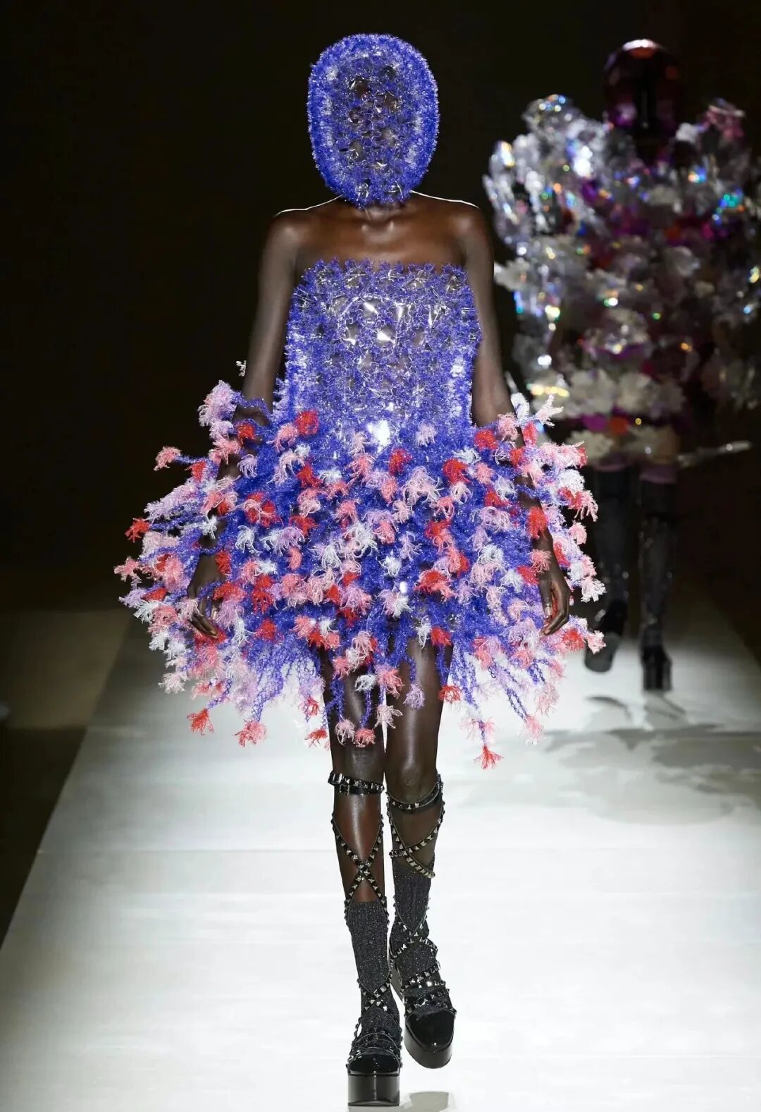 去年十月份Noir Kei Ninomiya发布的23SS系列,天马行空的设计,神秘的五彩斑斓的黑色迎着盛行的风,像盛开的蒲公英绽放。