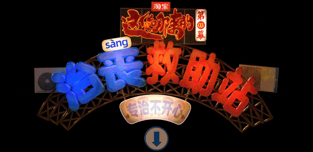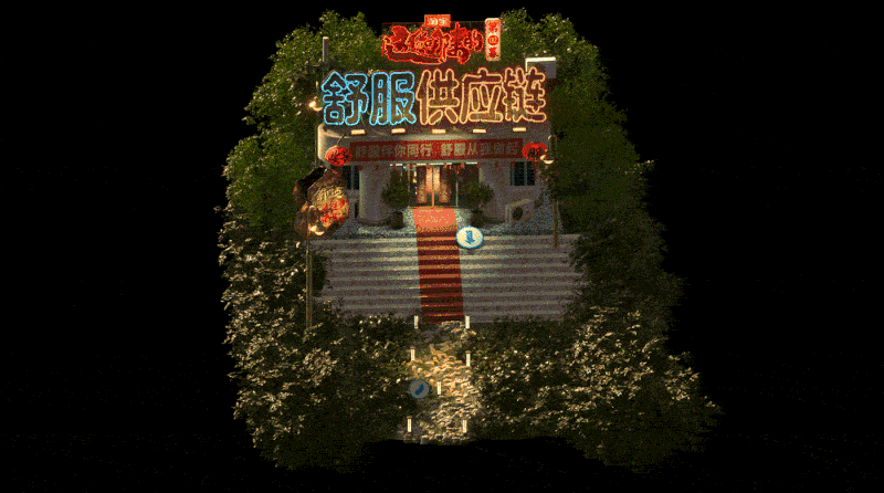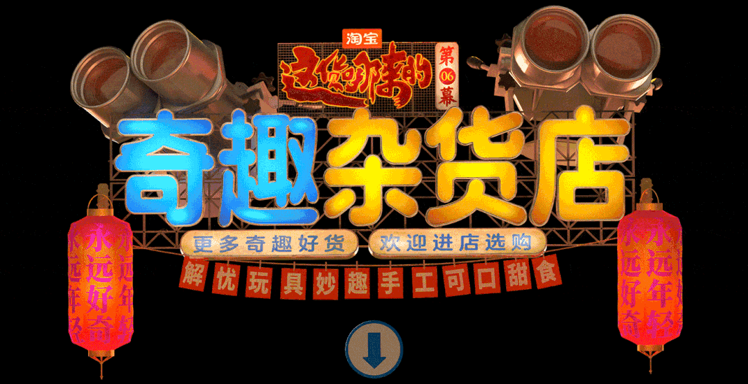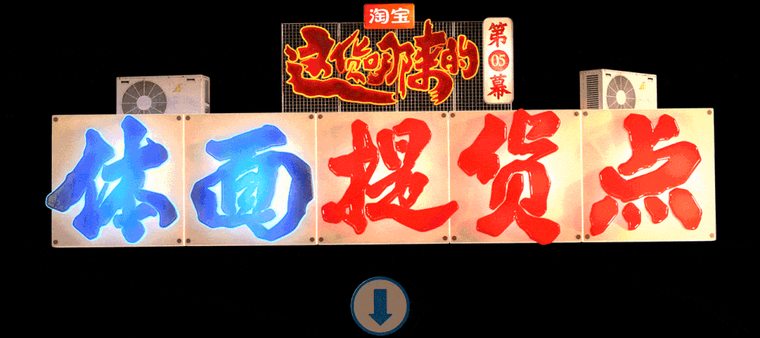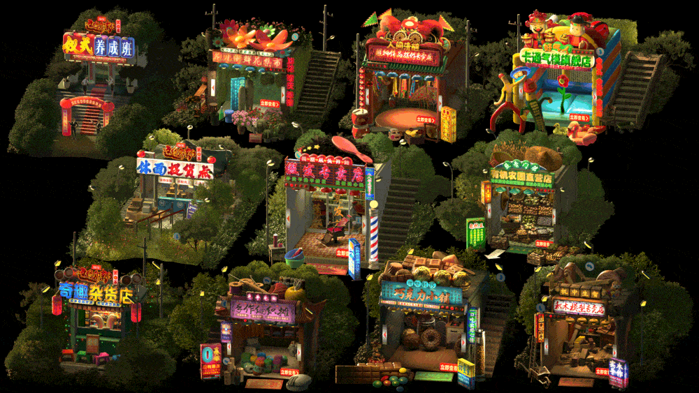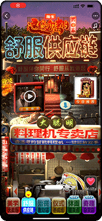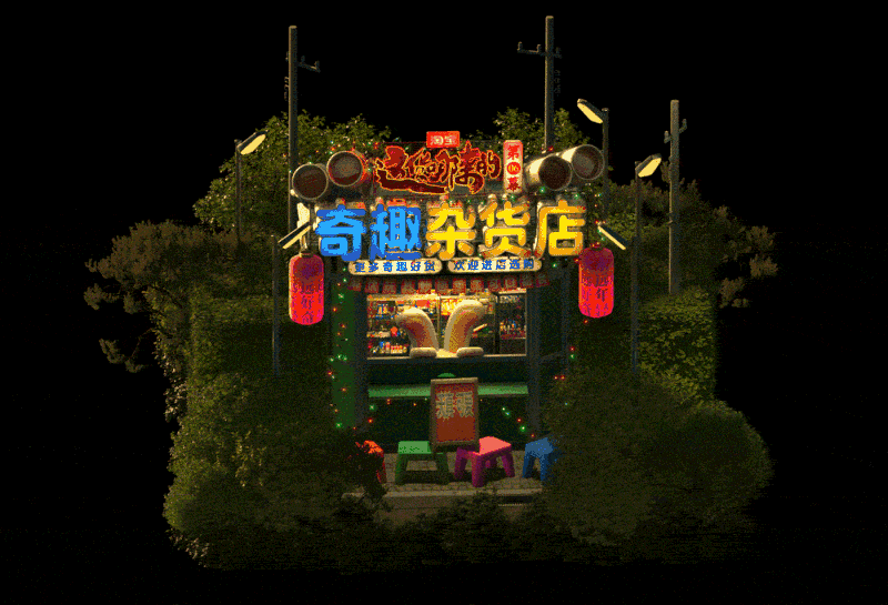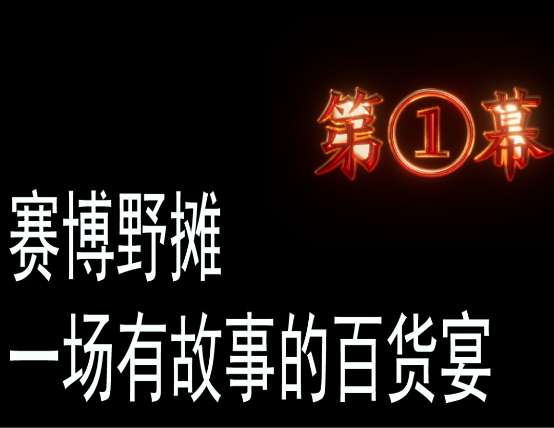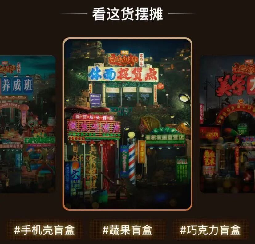 和纪录片一同上线的还有淘宝的赛博野摊的6集互动会场,淘宝邀请了国内知名设计师王二木,围绕着具有新奇感与烟火气的中式街头做了一个线上的烟火气市集。