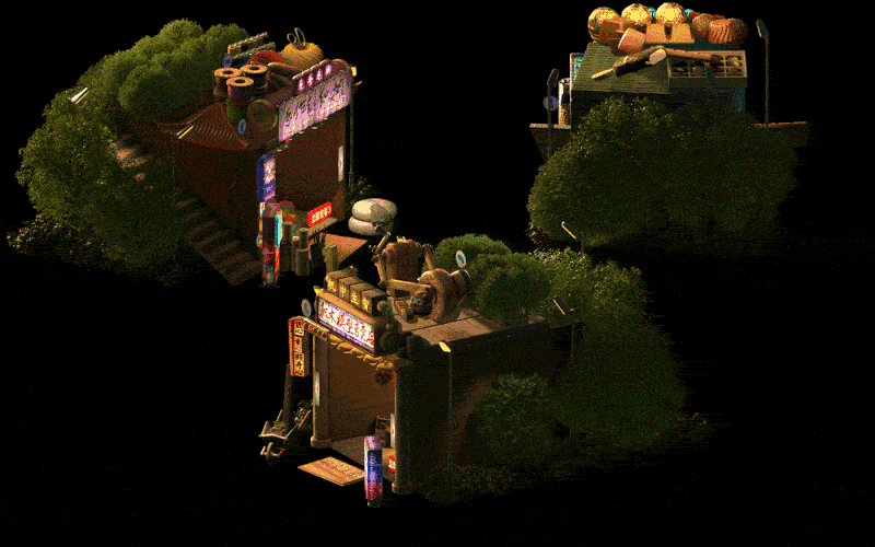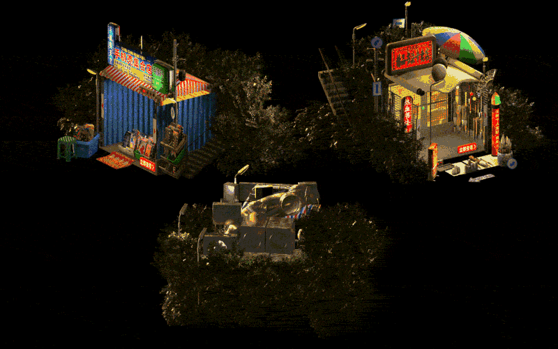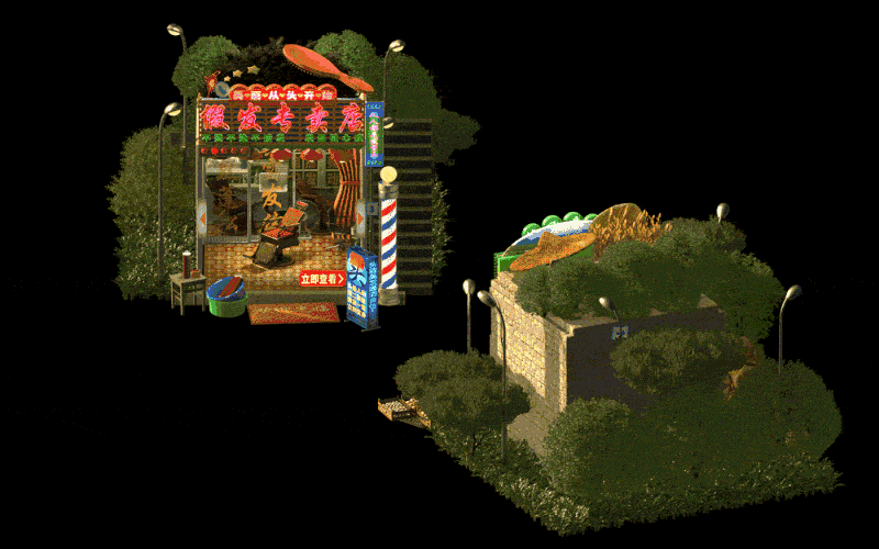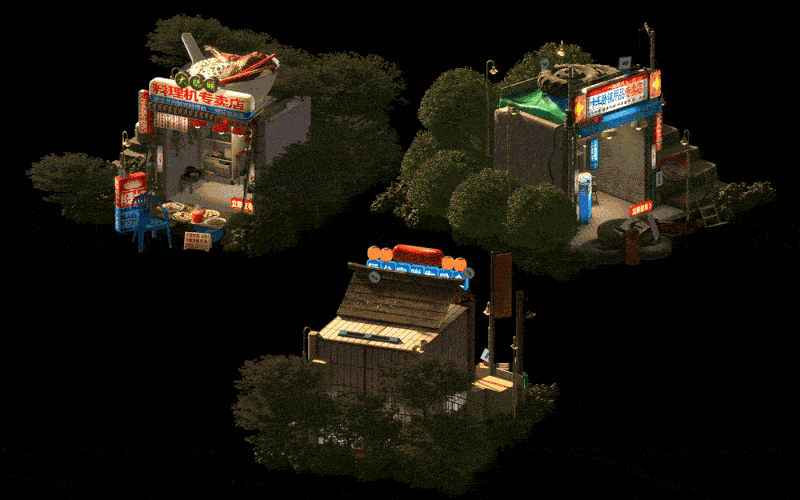 如今给淘宝做的赛博野摊H5,王二木将梳理了多年的中式复古研究,运用Blender的技术呈现出最真实的中国80、90年代生活场景。