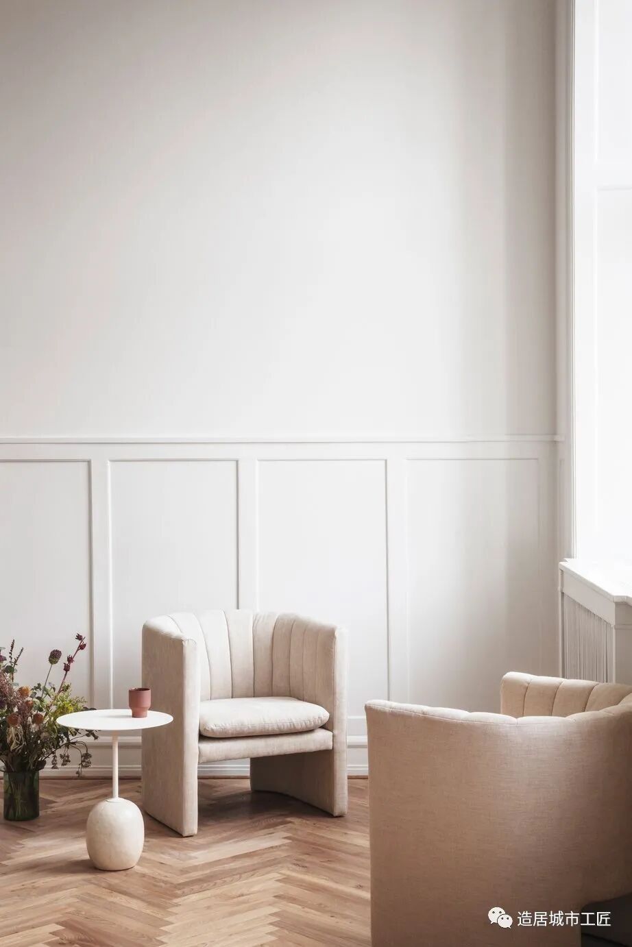 当然,除了用于空间顶面以外,石膏线还可以用石膏线勾勒空间墙面,弥补空间过于极简带来的单调感觉,增强空间的质感和艺术气息。