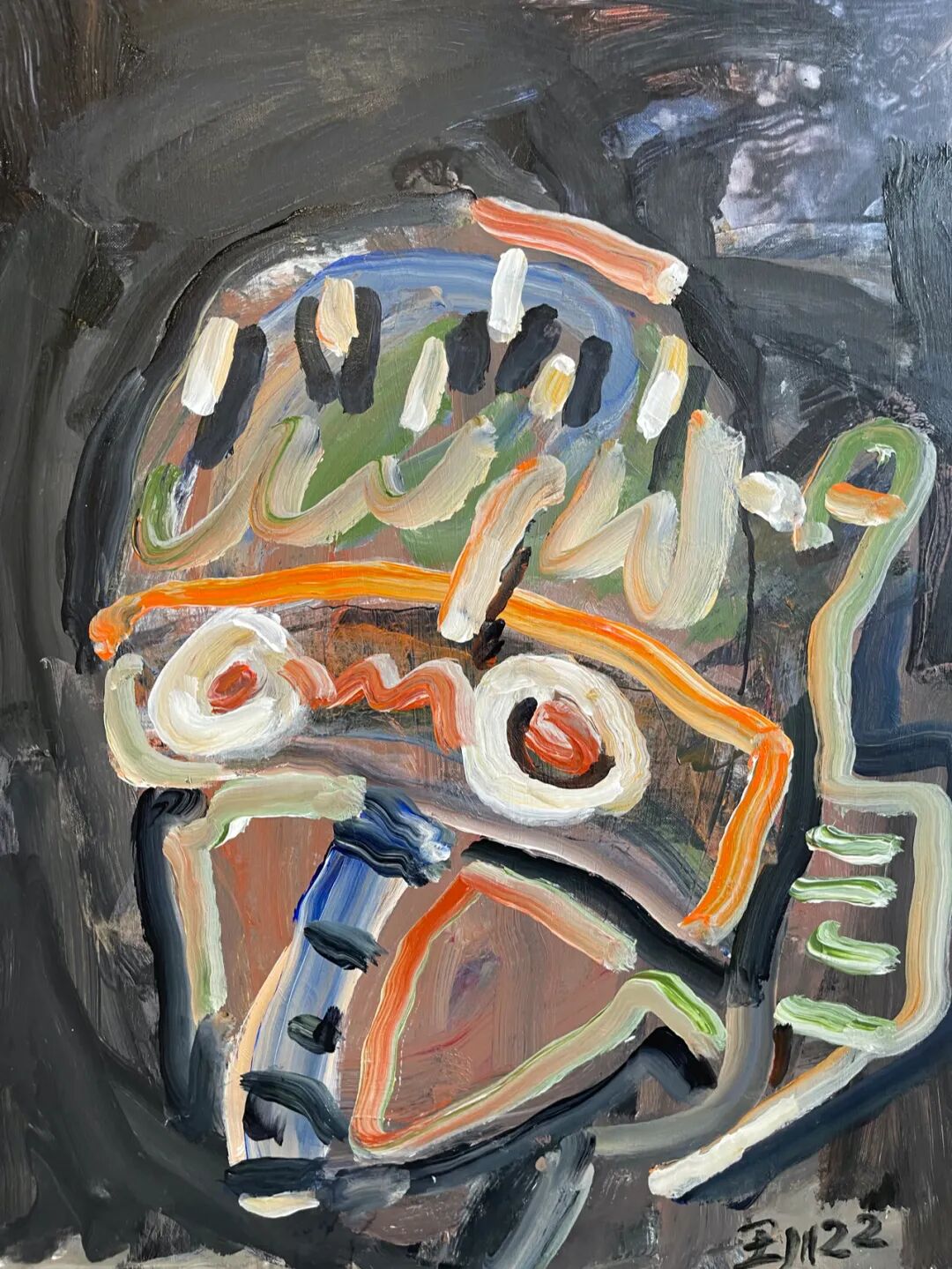 A:作品还是有点长进,我就觉得比较满意了。我以前没怎么画过肖像,我就想从一个肖像的形开始去画一个东西,然后再去画抽象,这样你就有了一个结构,里面就有内容了。最终还是想解决语言问题,找到自己的语言,而且是别人没怎么用过的,我觉得就可以了。