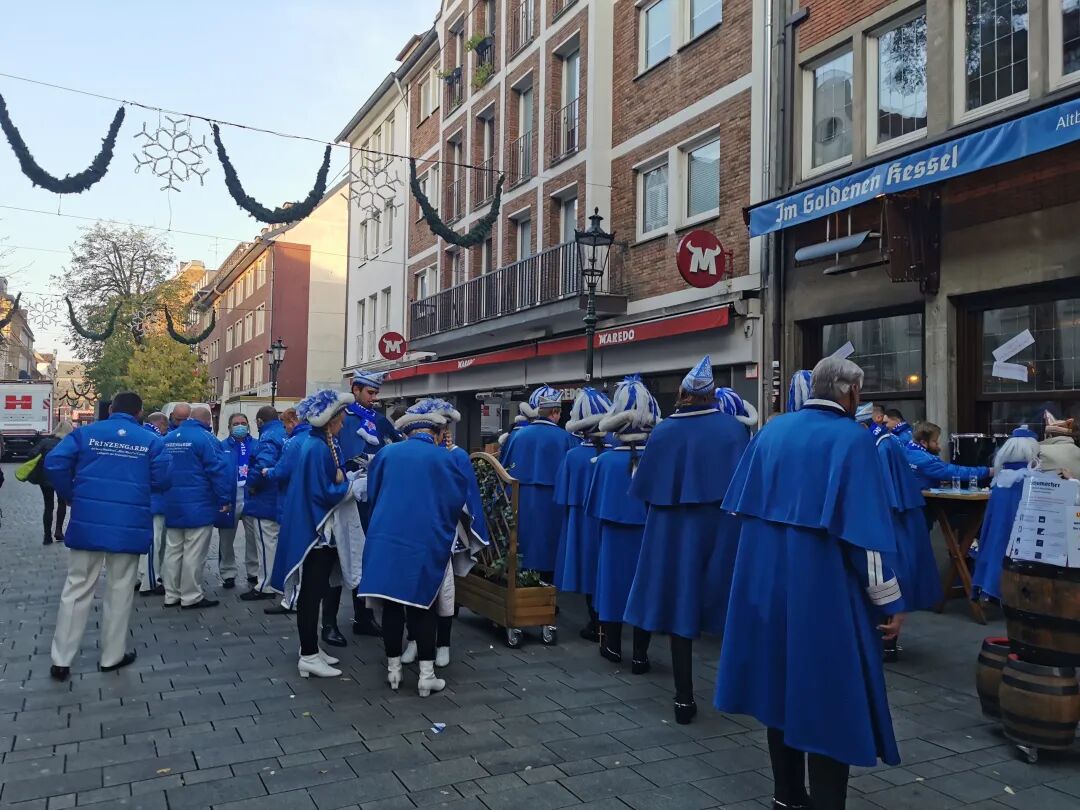 在杜塞尔多夫街头遇见一群身着传统服饰正在举行庆祝活动的德国人
